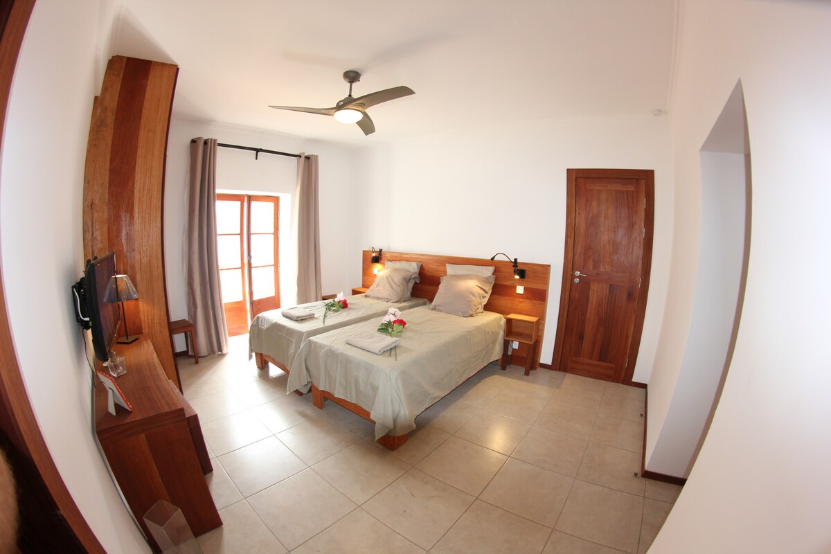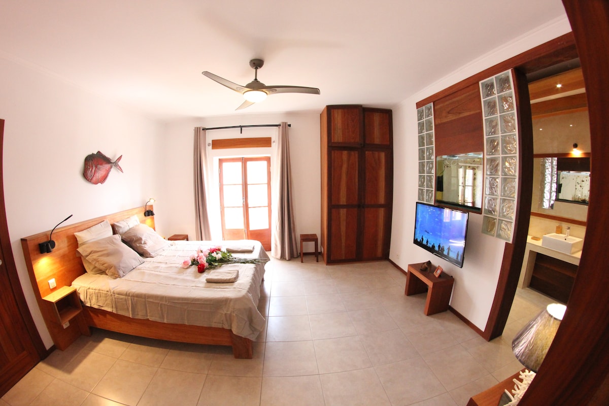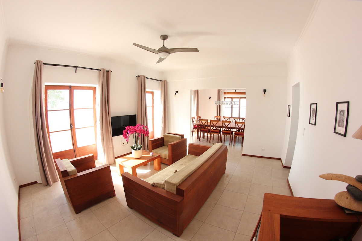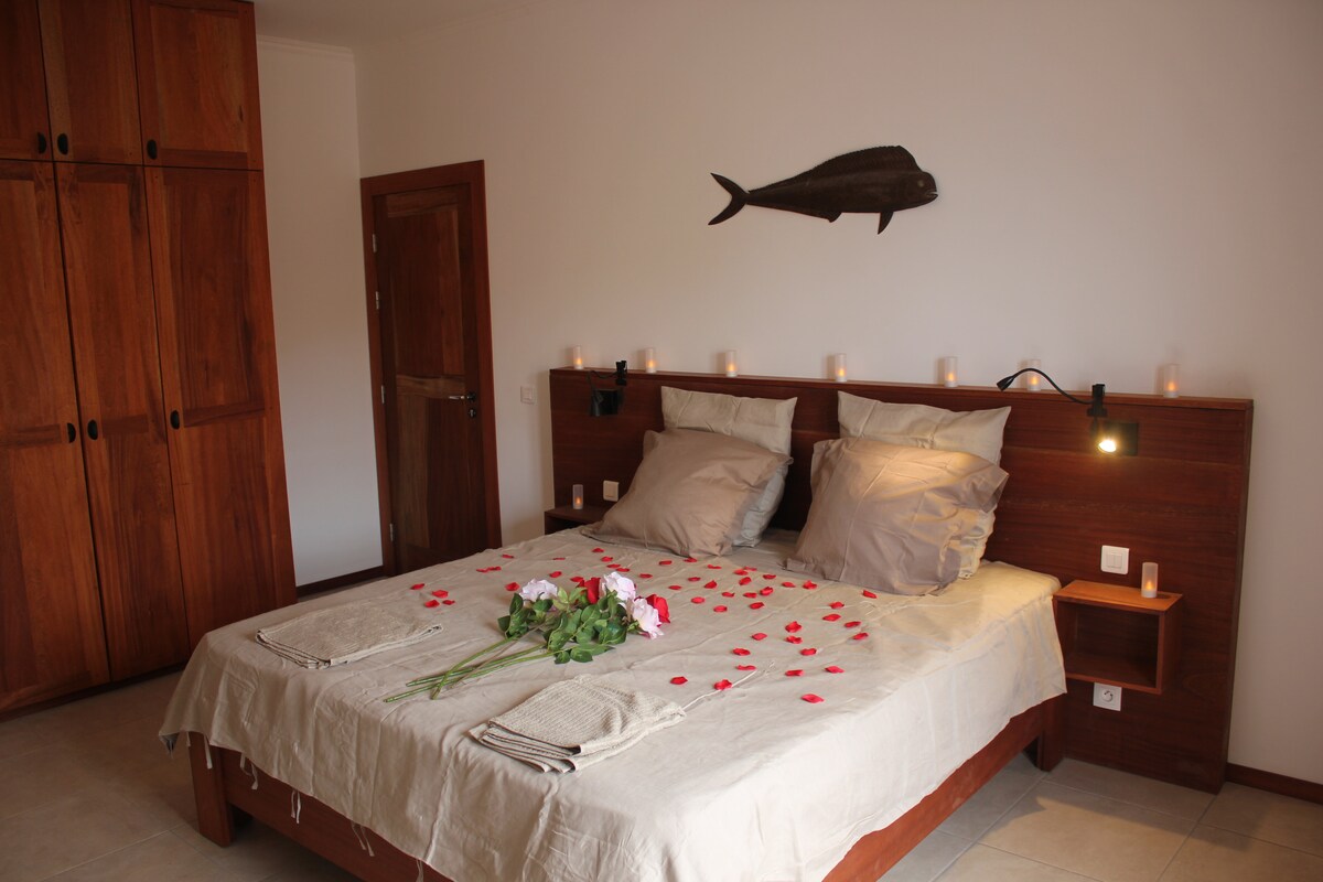 Casa-Evora© maison d'hôte à Vila FACE mer, première ligne, vue panoramique exceptionnelle. Une situation unique, au cœur de tout, des pêcheurs, des femmes qui vendent le poisson, de la vie locale, des commerces et restaurants. De style colonial modernisé, allie charme et convivialité, très bien équipée : balnéo, lit confort, wifi, coffre, TV, sèche-cheveux, ventilateur, rideaux occultant, volets, moustiquaires, jeux de lumières... Petit déjeuner, pique-nique, table d'hôte gastronomique poss.
