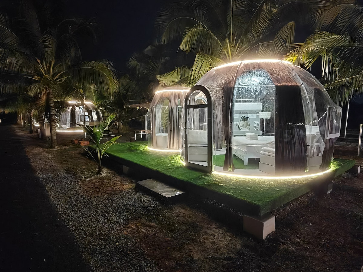 समुद्र के नज़ारे और समुद्र के किनारे कैम्पिंग साइट पर निजी बाथरूम के साथ लक्ज़री वातानुकूलित ग्लैम्पिंग गुंबद। अपने बिस्तर से सीधे सूर्यास्त देखें। कैम्पिंग साइट से पैदल दूरी पर कई थाई रेस्तरां हैं और साथ ही एक 7/11 सुविधा स्टोर भी है। Mu Kho Phetra नेशनल पार्क बस 10 मिनट की पैदल दूरी पर है या कश्ती से आप थाईलैंड के एकमात्र यूनेस्को ग्लोबल जियोपार्क में अंडमान सागर के कुछ अविश्वसनीय चट्टान संरचनाओं और सुंदर दृश्यों को देख सकते हैं।