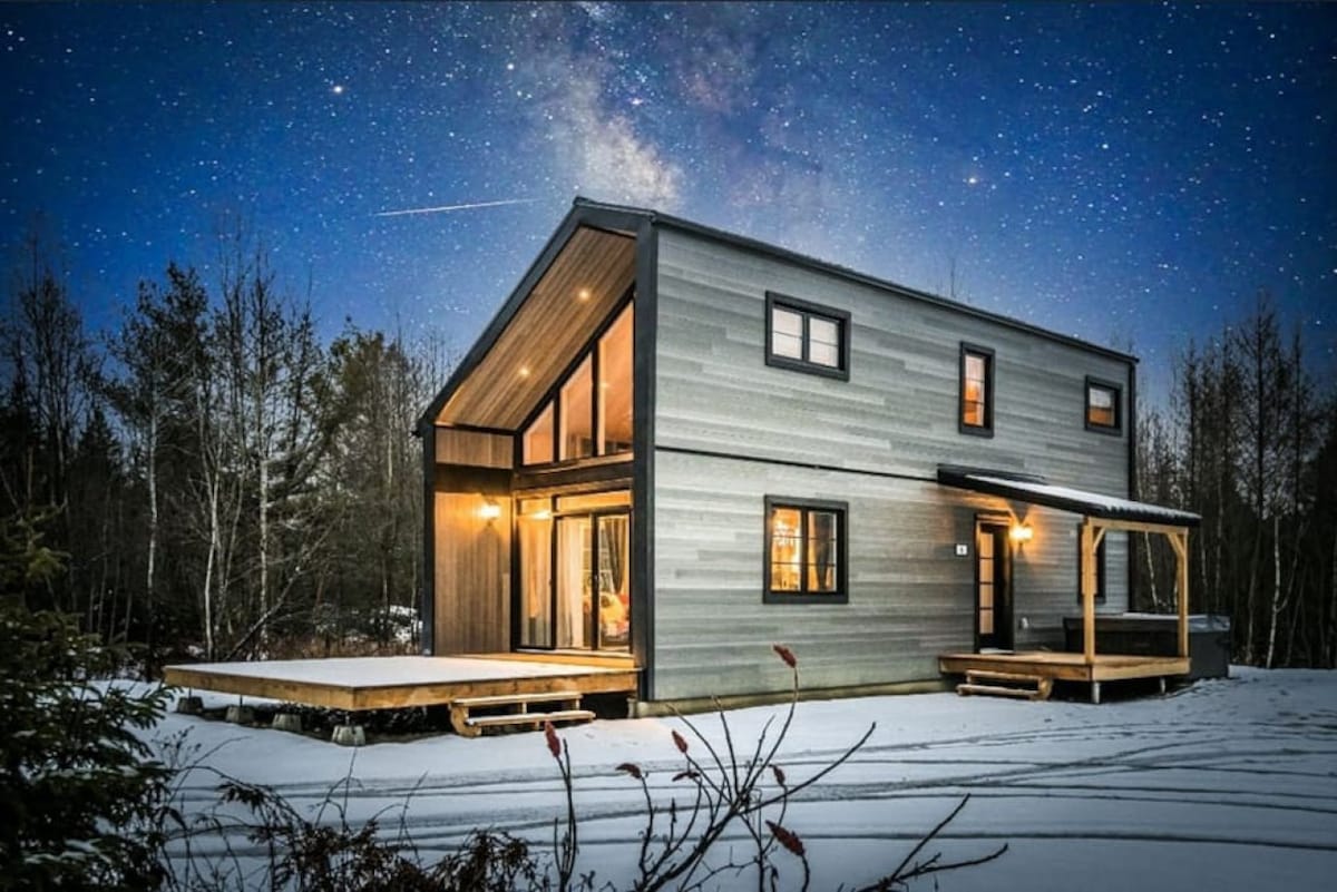 🏡 स्वीडिश, जंगल के बीचों - बीच मौजूद एक प्रतिष्ठित शैले, मॉन्ट्रियल से 1.5 घंटे की दूरी पर है। रोमांटिक छुट्टियाँ बिताने, परिवार या रिमोट के लिए आदर्श💻, यह स्कैंडिनेवियाई डिज़ाइन, आराम और सुकून को जोड़ता है। आरामदायक माहौल के लिए इनडोर/आउटडोर 🔥 फ़ायरप्लेस पूरी तरह से आराम करने के लिए 🛁 स्पा और सॉना उत्पादकता और वेलनेस को मिलाने के लिए तेज़ 📶 वाई - फ़ाई और वर्कस्पेस कुदरत के 🌿 विसर्जन के लिए बेमिसाल फ़ेनेस्ट्रेशन एक यादगार ठहरने के लिए झील और पगडंडियों का आनंद लें!