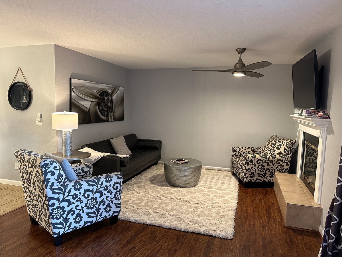 आपका स्वागत है! यह एक नया रीमॉडेल किया गया 2 बेडरूम, एक बाथ डुप्लेक्स होम है। हम मोटल 6 से एक ब्लॉक हैं, रेस्तरां, खरीदारी और अन्य होटलों से कुछ ब्लॉक। हम ओक वैली सामुदायिक अस्पताल से बस कुछ ही ब्लॉक दूर हैं। (नर्सों का दौरा करने के लिए बढ़िया)। हम Yosemite और Bay Area से 1.5 घंटे की दूरी पर हैं। सभी फर्नीचर और सामान आरामदायक तकिया शीर्ष गद्दे के साथ नए हैं। जबकि अधिकांश होटल केवल मेहमानों के बीच लिनन धोते हैं, हम सभी लिनेन और कम्फर्टर्स को धोते हैं और हर बुकिंग के बाद पूरी तरह से सैनिटाइज़ करते हैं।