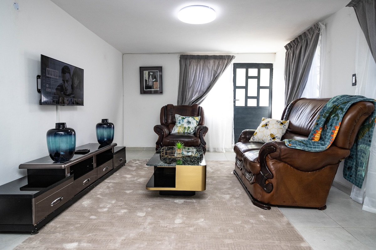Escape to our modern 3-bed, 3-bath Maseru home, perfect for 6 guests. Enjoy en-suite privacy in every room, a fully equipped kitchen, dedicated workspace with fast Wi-Fi, and a cozy living area with Netflix. Located in a scenic, peaceful neighborhood just a 10-minute drive from the city centre. Secure garage parking included. Your ideal base for exploring Lesotho!