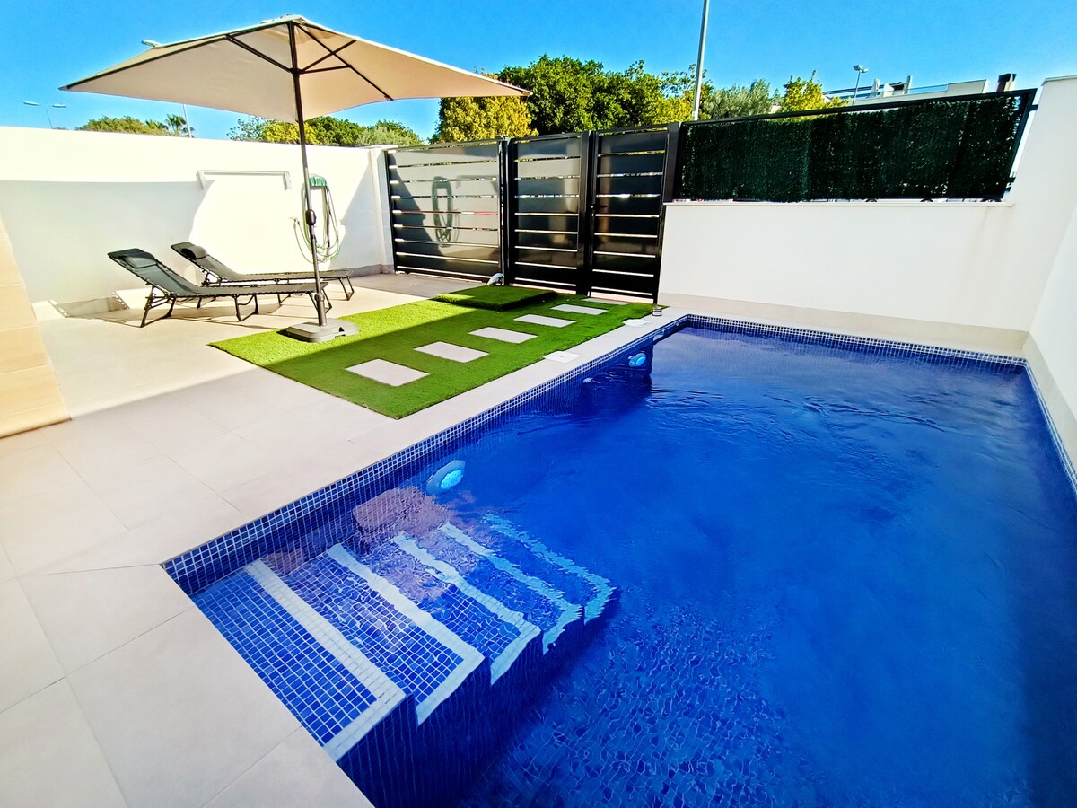 स्पा, बगीचे और विशाल छत के साथ एक सुंदर 2 बेडरूम, 2 बाथरूम अलग कोठी। ला टॉरे गोल्फ़ पर स्थित शानदार जगह, रेस्टोरेंट, पूल और दुकानों से पैदल दूरी पर। मर्सिया यूरोप के सबसे धूप वाले इलाकों में से एक है और आसपास के इलाके गतिविधियों से भरे हुए हैं, चाहे आप एक पारिवारिक छुट्टी, सक्रिय छुट्टी, गोल्फ़ अवकाश की तलाश कर रहे हों या बस समुद्र तट पर आराम करना चाहते हों। यहाँ हर किसी के लिए कुछ है और मेरा घर इसका आनंद लेने के लिए आपका सही आवास है। बेझिझक पूछताछ करें।