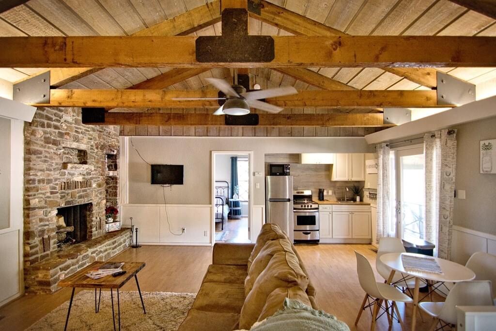 एक शांत मेसन पड़ोस में टकराया हुआ, 1940 के दशक का यह पूरी तरह से पुनर्निर्मित कॉटेज दो लोगों के लिए बिल्कुल सही जगह है। विंटेज - आधुनिक शैली, आरामदायक स्पर्श और विचारशील सुविधाओं का आनंद लें जो आपको घर जैसा महसूस कराती हैं। ऐतिहासिक मेसन स्क्वायर से एक मील से भी कम दूरी पर, आप दुकानों, भोजन और आकर्षणों के करीब होंगे - जबकि अभी भी शांति और निजता का आनंद ले रहे हैं। मेसन, टेक्सस के बीचों - बीच रोमांटिक वीकएंड या अकेले घूमने - फिरने के लिए बिल्कुल सही।