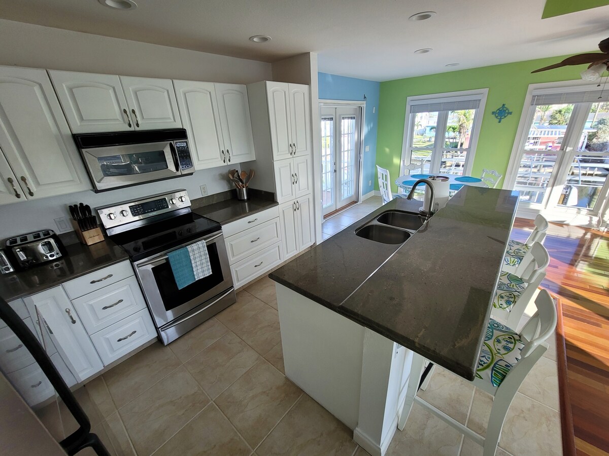यह सब वाह के बारे में है! आप इस शानदार और अनोखे 3/3 को पानी पर छोड़ना नहीं चाहेंगे। छिपे हुए मज़ेदार सीक्रेट स्पीकसी। इसे अपने पास रखें और जब समय सही हो, तो परिवार के बाकी सदस्यों के साथ साझा करें। अपनी बोट को अपने डॉक से बांधें और रेस्तरांऔर दुकानों तक पैदल चलें। पूरी तरह से सुसज्जित किचन, वॉशर और ड्रायर वाईफ़ाई, टीवी, गेम। 1 छोटे कुत्ते को अतिरिक्त शुल्क लेने की अनुमति है। 2 बाइक, बोर्ड गेम, गधा काँग आर्केड और Bbq। छोटे इवेंट की इजाज़त है। बड़े परिवार और कुत्तों के लिए बगल में एक दूसरा घर उपलब्ध है।