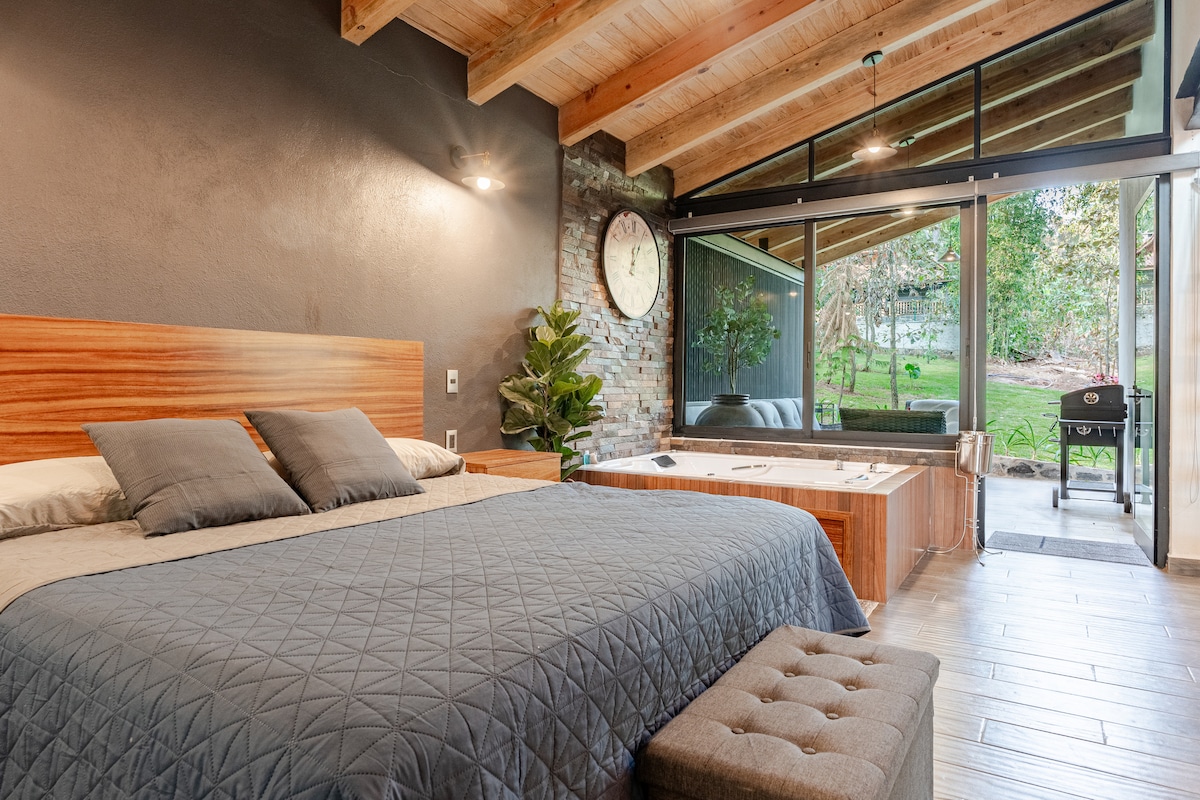 Hermoso chalet para pareja con: - mini alberca climatizada - cómoda cama King size - cocina equipada (utensilios de cocina) -microondas - maquina de Nespresso (cápsulas, endulzante y té) - smart tv con wifi Área exterior - asador - comedor al aire libre - hamaca Disfruta del fácil acceso a todo desde este alojamiento perfectamente ubicado, a tan solo 5 minutos del centro.