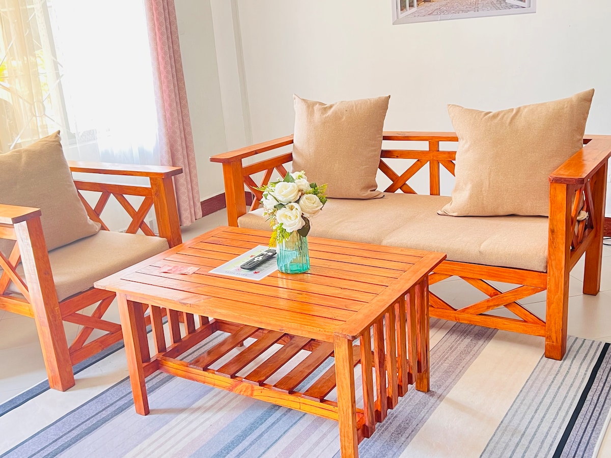 Welcome to cozy and homey one bedroom apartment with big space for your comfort,relaxation and rest A full equiped kitchen,free breakfast,a spaciuos living room,a modern bathroom,cozy beddings for comfortable sleep The view of the garden with an outdoor sitting area makes the home more alive Its located in the prime area where you will have access to restaurants(local&international),15minutes walk to the beach,local transport,cofeeshops and night life
