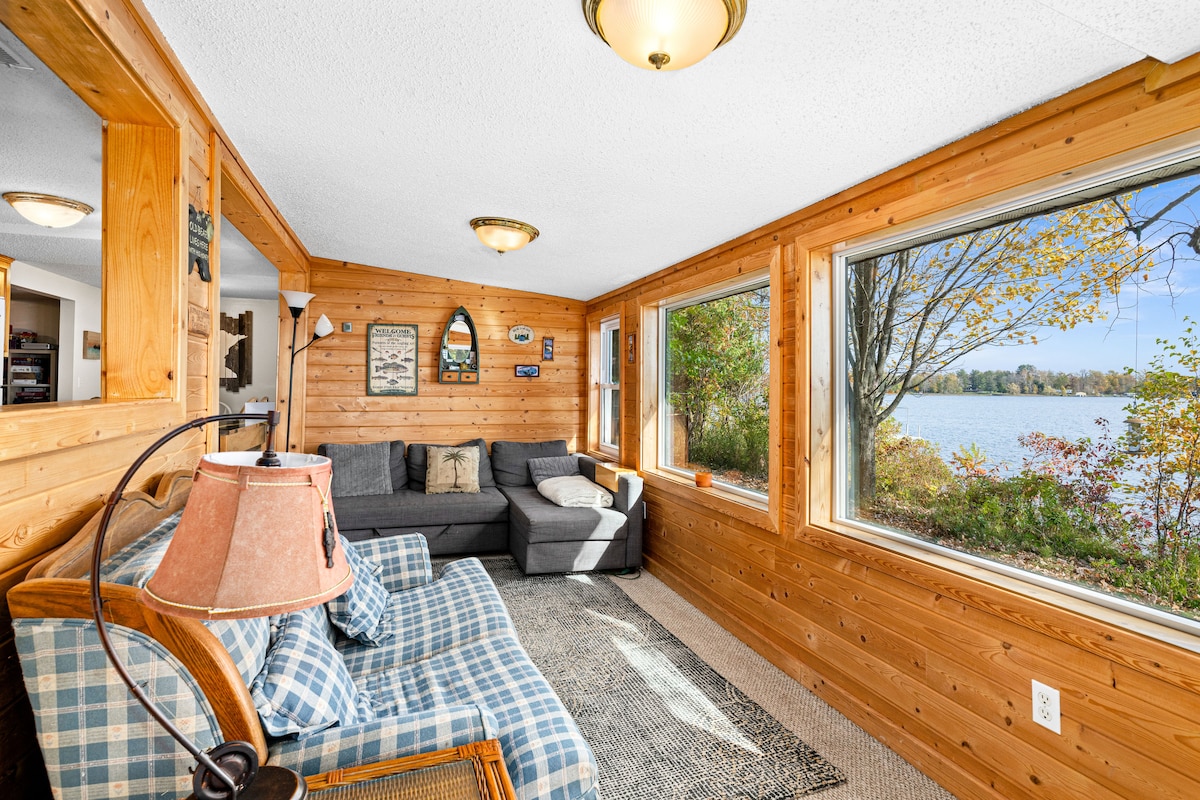 एक शानदार झील के दृश्य के साथ अपने आप को पूरा कॉटेज। हमारे पास द्वीप झील पर 4 एकड़ पर स्थित 315 फीट की लक्शोर है। हमारे पास एक निजी डॉक है। हमारे 900 वर्ग फुट के कॉटेज में एक पूर्ण रसोईघर, भोजन कक्ष, लिविंग रूम, दो बेडरूम, बाथरूम और एक सोफे है जो एक बिस्तर में खुलता है। एक फायर पिट उपलब्ध है, ( लकड़ी से सुसज्जित), एक डोंगी और 2 कश्ती के साथ आप गोदी से मछली पकड़ सकते हैं या अपनी खुद की नाव ला सकते हैं। एक पोंटून नाव किराए पर उपलब्ध है। हम दो कुत्तों को छोड़कर जाएंगे।