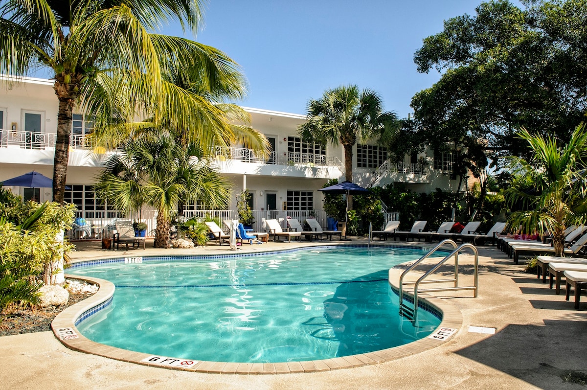 मियामी बीच वन बेडरूम अपार्टमेंट, फ़ुल किचन और पूल