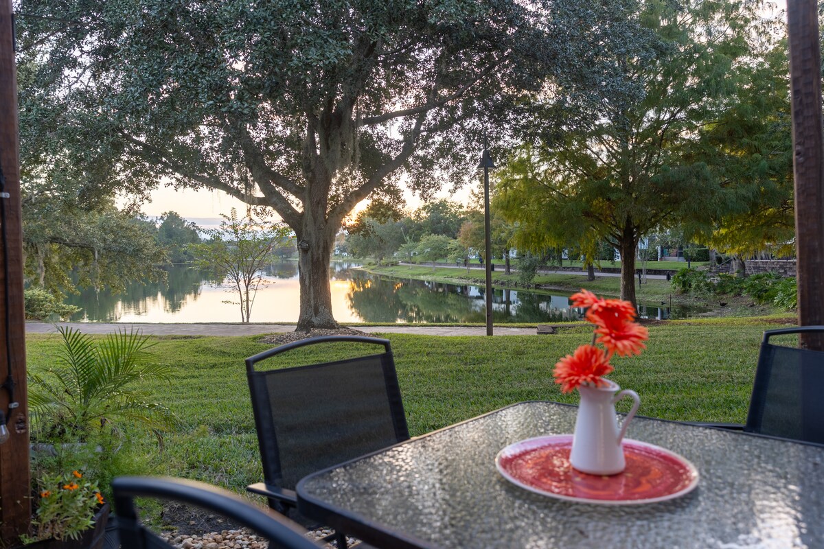 शांतिपूर्ण झील का नज़ारा। बटरफ़्लाई रिट्रीट