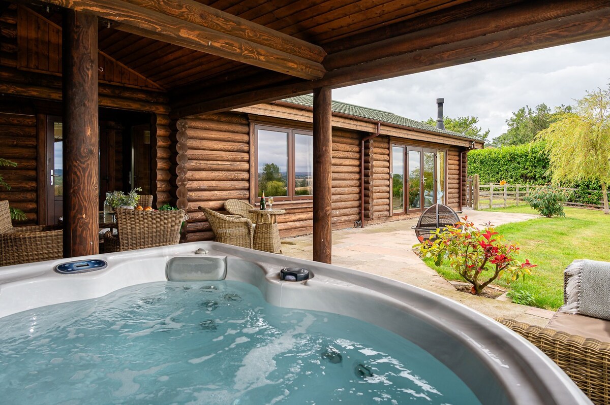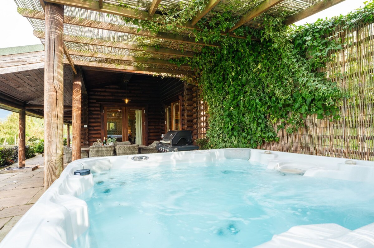 लग्ज़री लॉग केबिन हॉट टब और बेहतरीन व्यू