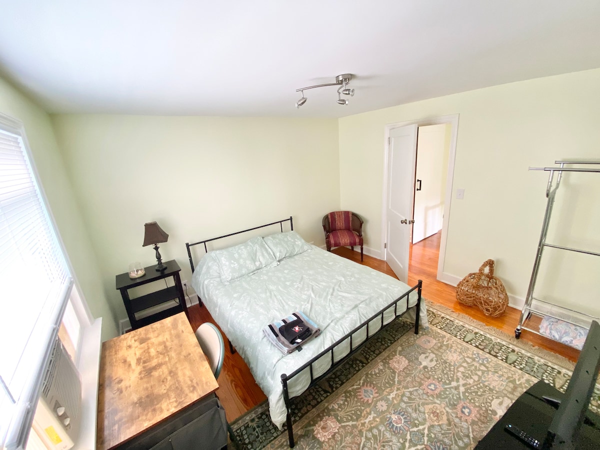 किंग साइज़ बेड वाला शानदार स्टूडियो अपार्टमेंट, तेज़ इंटरनेट वाला फ़्लैटस्क्रीन टीवी, नया रिक्लाइनर , शॉवर वाला डीप सोकिंग टब। निजी बिना चाबी वाली एंट्री, सभी चादरें दी गई हैं। किचन टेबल, टोस्टर ओवन वाला मिनी रेफ़्रिजरेटर, माइक्रोवेव, वॉटर डिस्पेंसर, कॉफ़ी मेकर। यह दरवाज़े के करीब एक लेवल की पार्किंग है। (यह कोई बेसमेंट यूनिट नहीं है, कोई चरण नहीं है) 30 दिन या इससे ज़्यादा समय के लिए बुक करने पर मासिक छूट अपने आप लागू हो जाएगी। आपकी सुविधा के लिए यूनिट वॉशर और ड्रायर में। हम साफ़ चादरें देते हैं।