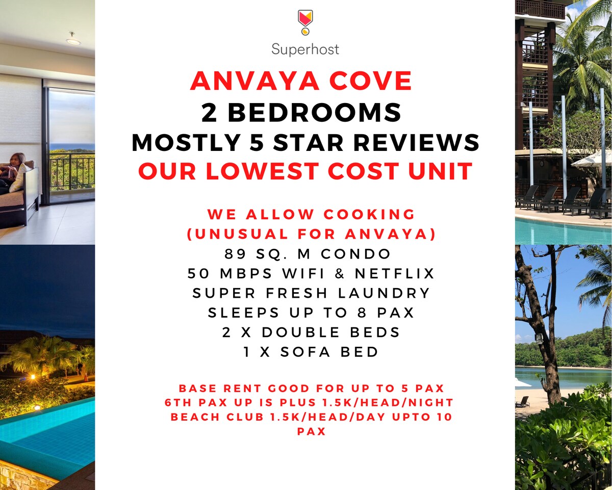 I’m a Superhost with 700+ reviews ✓ We live at Anvaya ensuring your stay is seamless ★ Super clean unit with professional laundry ★ Cooking Allowed ★ WiFi/Netflix ★ Base rate good for up to 4 pax ★ Additional pax @ 1.5k/head/night ★ Beach Club entry from 1.5k/head/day - only paid on days you actually enter the club ★ Beach Club now managed directly by Ayala Hospitality ★ New Head Chef who trained at Enderun ★ Makes a great base to also explore Zoobic Safari, Ocean Adventure & Las Casas Filipinas