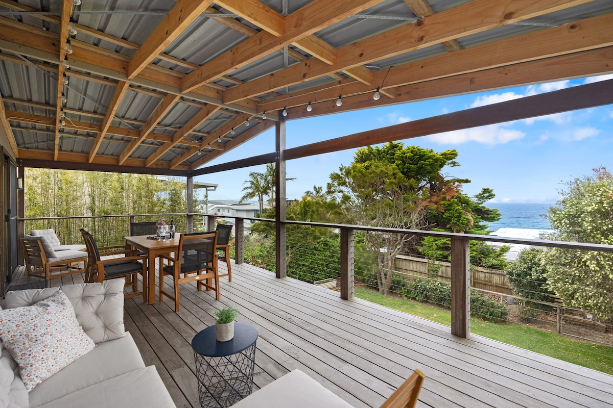 One of the best locations at Malua Bay with unbroken ocean views. Enjoy a stunning stay in spacious comfort and style which can accommodate up to 8 guests. Fabulous location all year round, a 1-2 minute ocean front walk to Garden Bay, a 5 minute walk to the popular Three66 café plus enjoy all that the south coast has to offer. Watch the whales from the front deck as they migrate north in the cooler months, and south with their calves as it starts to warm up towards summer.