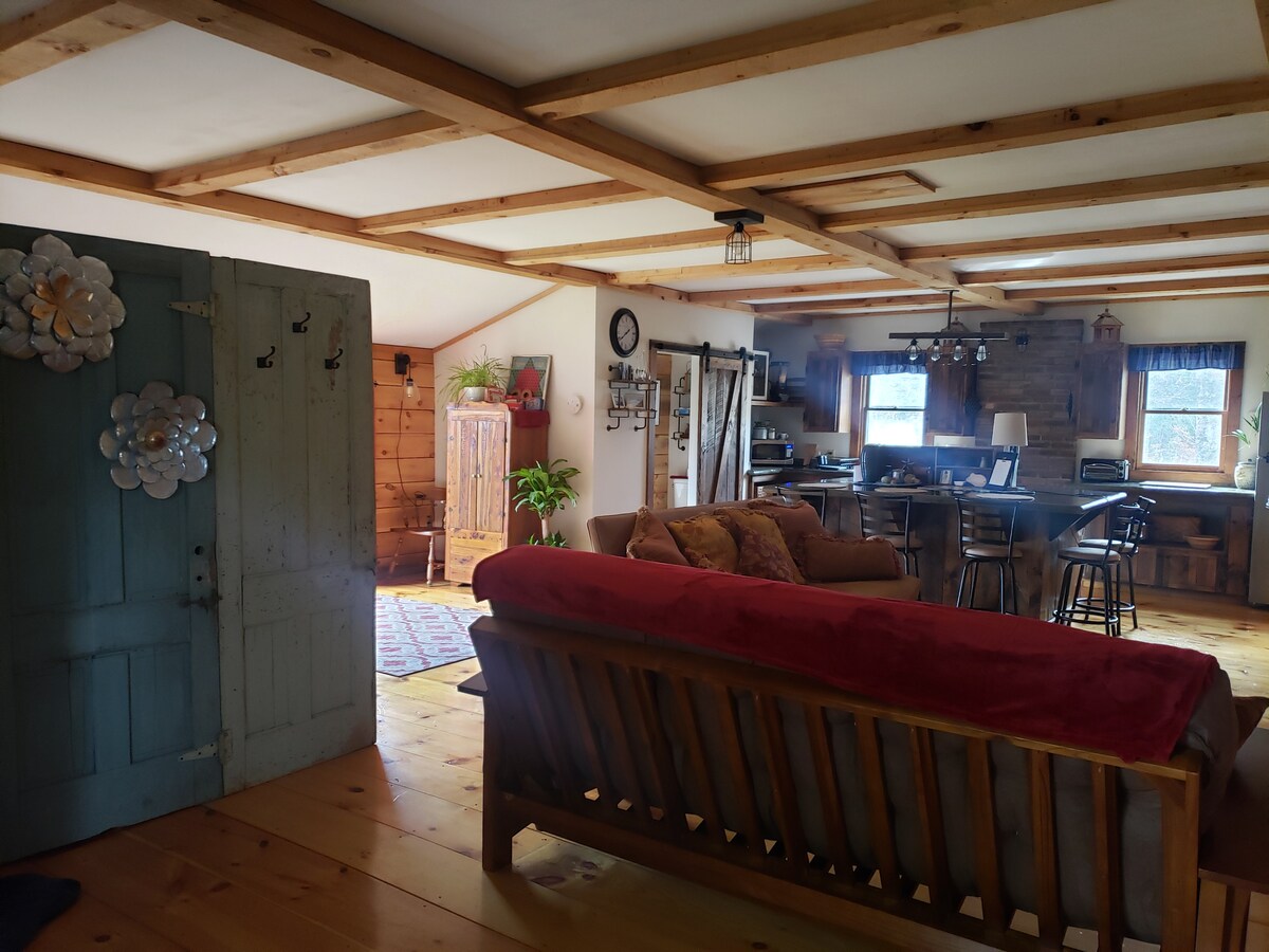 वेस्ट विंडसर, वरमोंट की शांत पहाड़ियों में पेड़ों के बीच बसे हमारे नए पुनर्निर्मित स्टूडियो अपार्टमेंट में आपका स्वागत है। दूसरी मंज़िल पर मौजूद यह अलग - अलग संरचना माउंट एस्कटनी और हमारे अपने निजी तालाब के लुभावने नज़ारों के साथ एक शांत पलायन की सुविधा देती है। वरमोंट लैंडस्केप की प्राकृतिक सुंदरता से घिरे इस सोच - समझकर डिज़ाइन किए गए स्टूडियो अपार्टमेंट के आराम में डूब जाएँ। आपके बेहद आराम और आनंद को सुनिश्चित करने के लिए हर विवरण को क्यूरेट किया गया है।