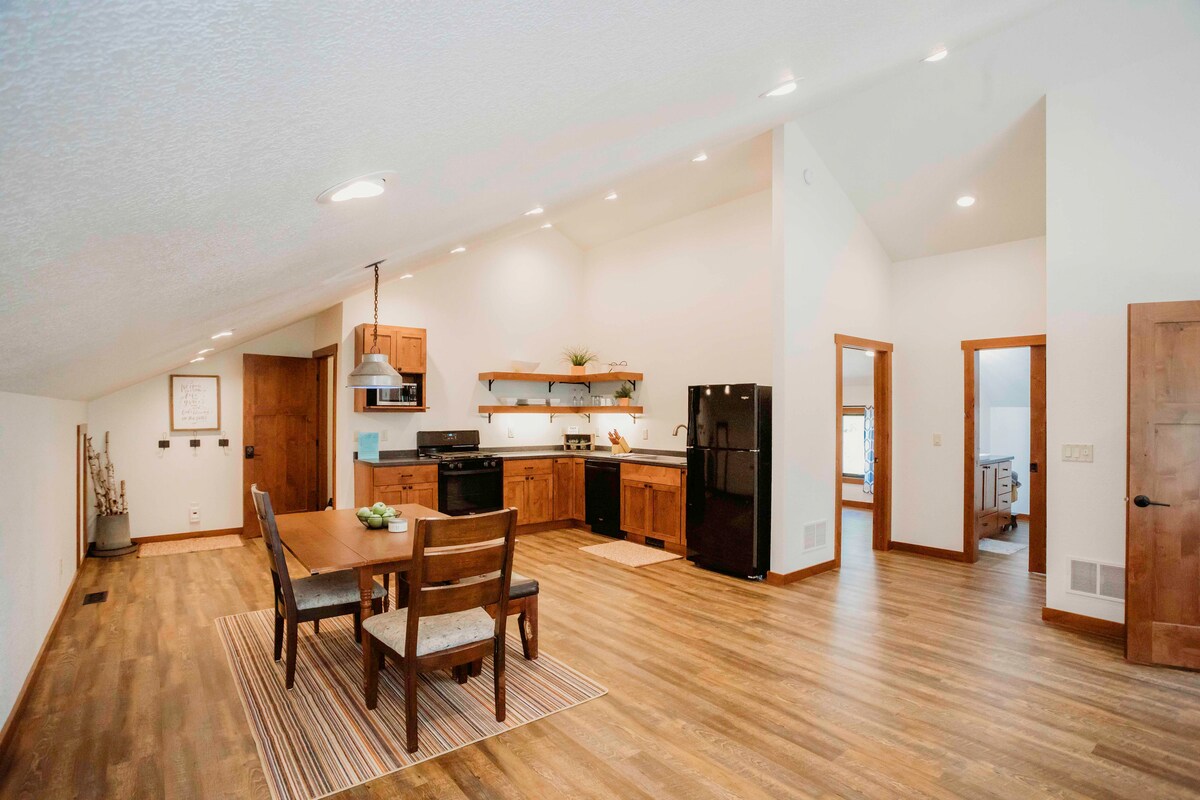 A beautiful, quiet retreat in the Black Hills. The 1100 SFT open concept suite is inviting and easily accommodates 4 people. Located above the garage, this unit includes two bedrooms, (1 with a queen bed and 1 with a full bed with full trundle) and a bathroom. The views of the hills are incredible. UPDATE: There is NO stove. Other ways to cook are provided e.g. air fryer/instant pot, hot plate, microwave, toaster, gas grill) PLEASE NOTE: There is NO TV in the suite. The WiFi is EXCELLENT
