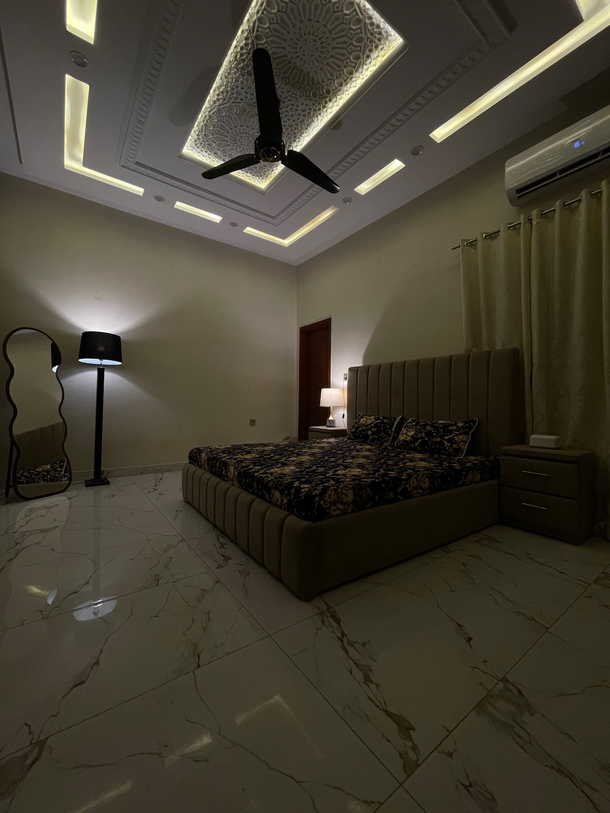 Escape to our serene bedroom oasis, perfectly suited for couples and small families seeking a relaxing getaway .Enjoy a comfortable night's sleep in our cozy bedroom . The apartment features a comfortable bed, a well-equipped kitchenette, and a fully smart tv, air conditioner, 24/7 internet, electric heating rod for hot water. Located in a prime location, you'll have easy access to nearby attractions such as imtiaz mall, Buch international hospital, cinema and restaurants .