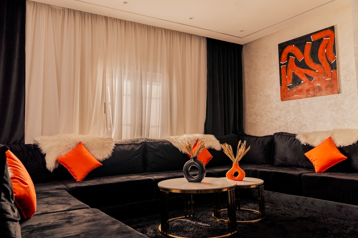 Séjour moderne, calme et confortable à Marrakech 🇲🇦, à seulement quelques minutes de Guéliz et du centre-ville. Salon lumineux 🛋️, quartier calme 🌿, climatisation ❄️, TV avec Netflix 🎬 et connexion fibre haut débit ⚡ Équipements premium, idéal pour un séjour sans souci ✔️ Parfait pour profiter de Marrakech tout en restant proches du centre 📍 Convient aux séjours familiaux, professionnels ou prolongés.