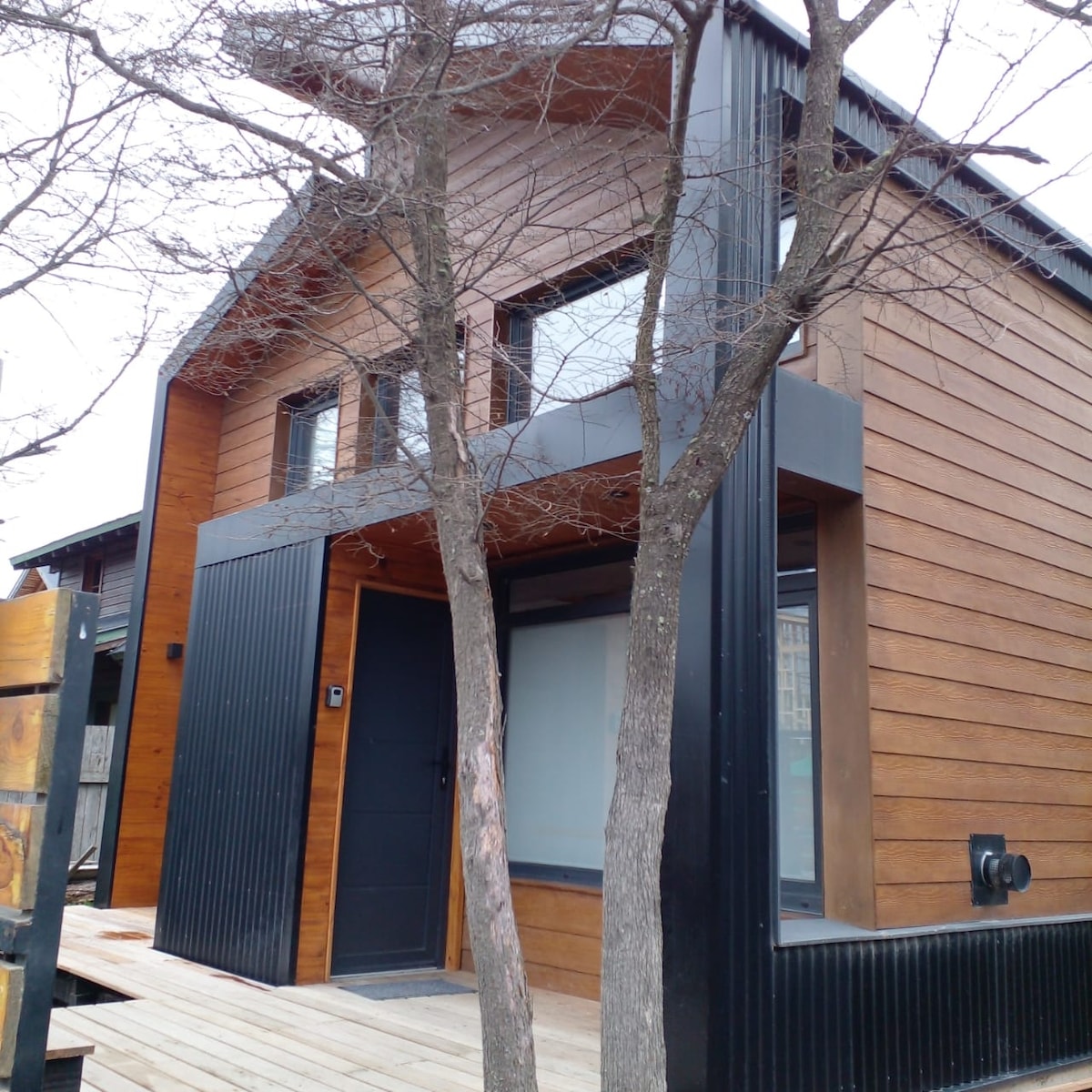 बाहर बैठने की सुविधा देने वाले छोटे घर