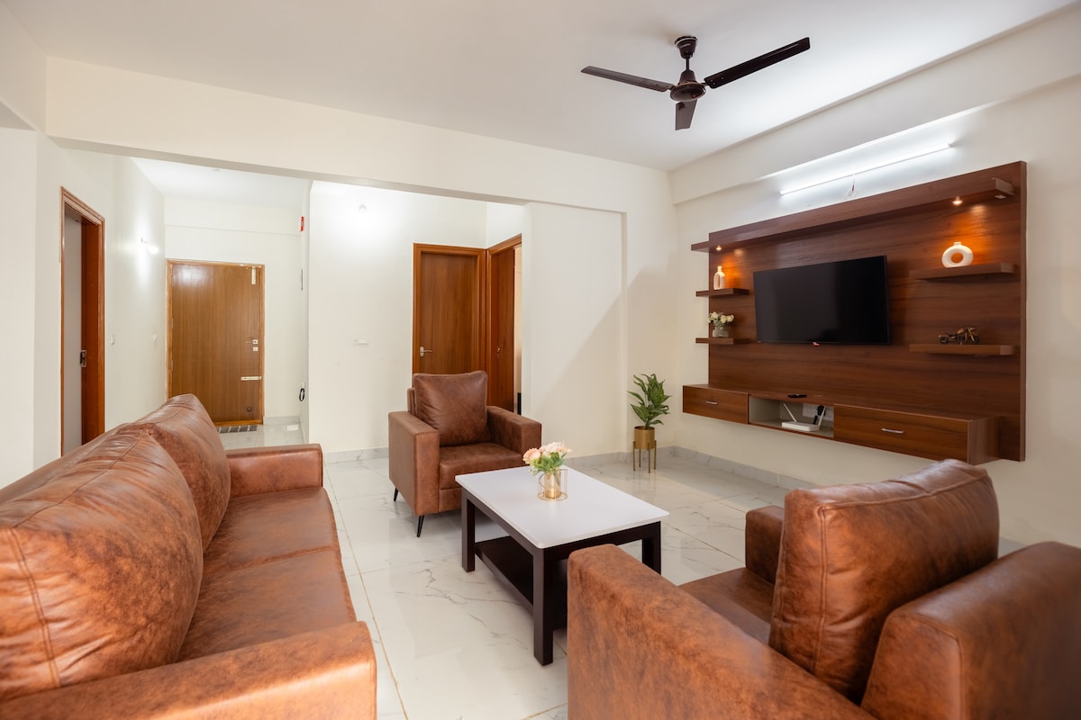 Feel like youтАЩve escaped the city without leaving it. Wrapped in greenery, this bright, spacious, east-facing first-floor home in the Electronic City area is in a quiet gated community, 1 km from Hosur Rd (NH44). Ideal for families, professionals, or longer stays, it offers two bedrooms with attached baths plus private sleeping areas and a fully equipped kitchen. Includes 55" Smart TV, 200 Mbps WiFi, washing machine, large fridge, parking, and 24/7 security. Clean, comfortable, peaceful, homely.