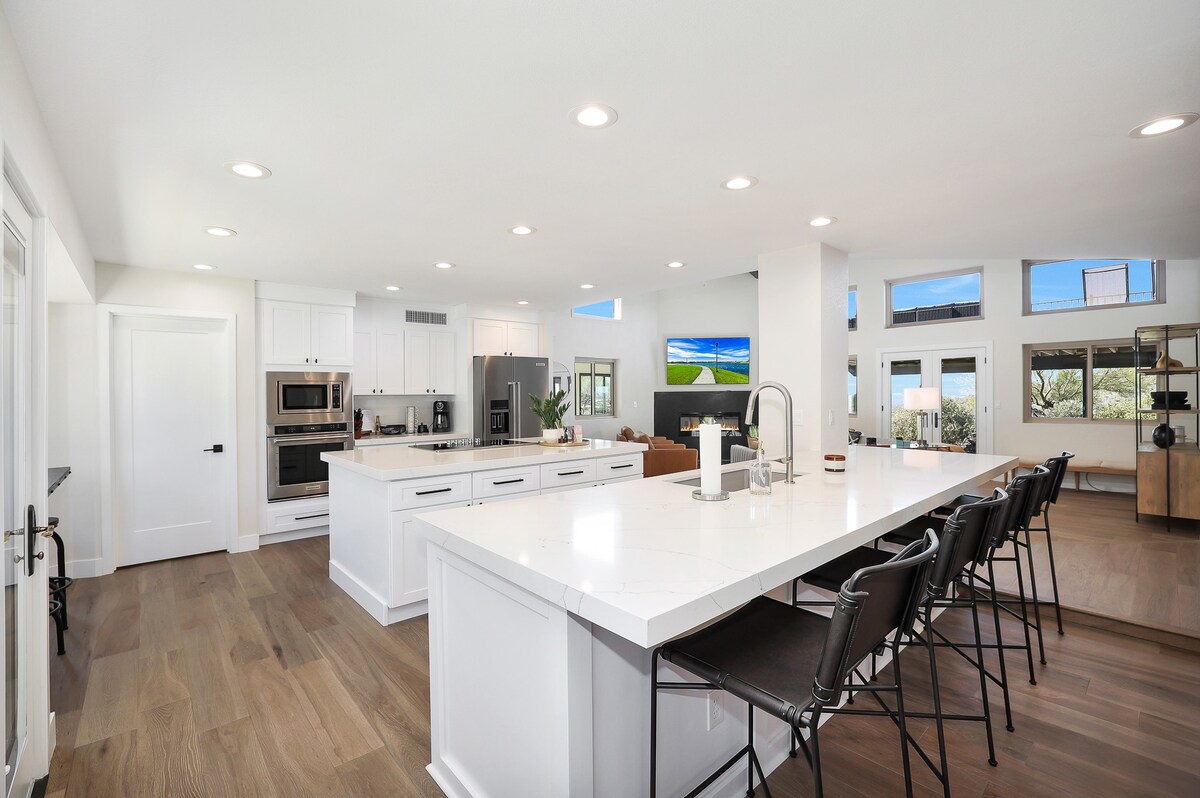 इस विशाल 4 - बेडरूम/3 - बाथरूम हवेली में शानदार डिज़ाइन और प्राकृतिक सौंदर्य का संगम है जो ग्रामीण उत्तर फ़ीनिक्स में एकांत निजता प्रदान करता है अभी तक भोजन और खरीदारी से बस कुछ ही मिनटों की दूरी पर स्थित है। विशाल आउटडोर क्षेत्र में रसीला रेगिस्तान जीवों और एक आकर्षक रिसॉर्ट - शैली पूल और गर्म टब के साथ उत्तम भूनिर्माण है। इसके अलावा, आपके पास एक शानदार soiree या किसी अन्य विशेष अवसर की मेज़बानी करने के लिए एक आधुनिक बारबेक्यू और बहुत सारे आरामदायक आँगन फर्नीचर तक पहुँच होगी।