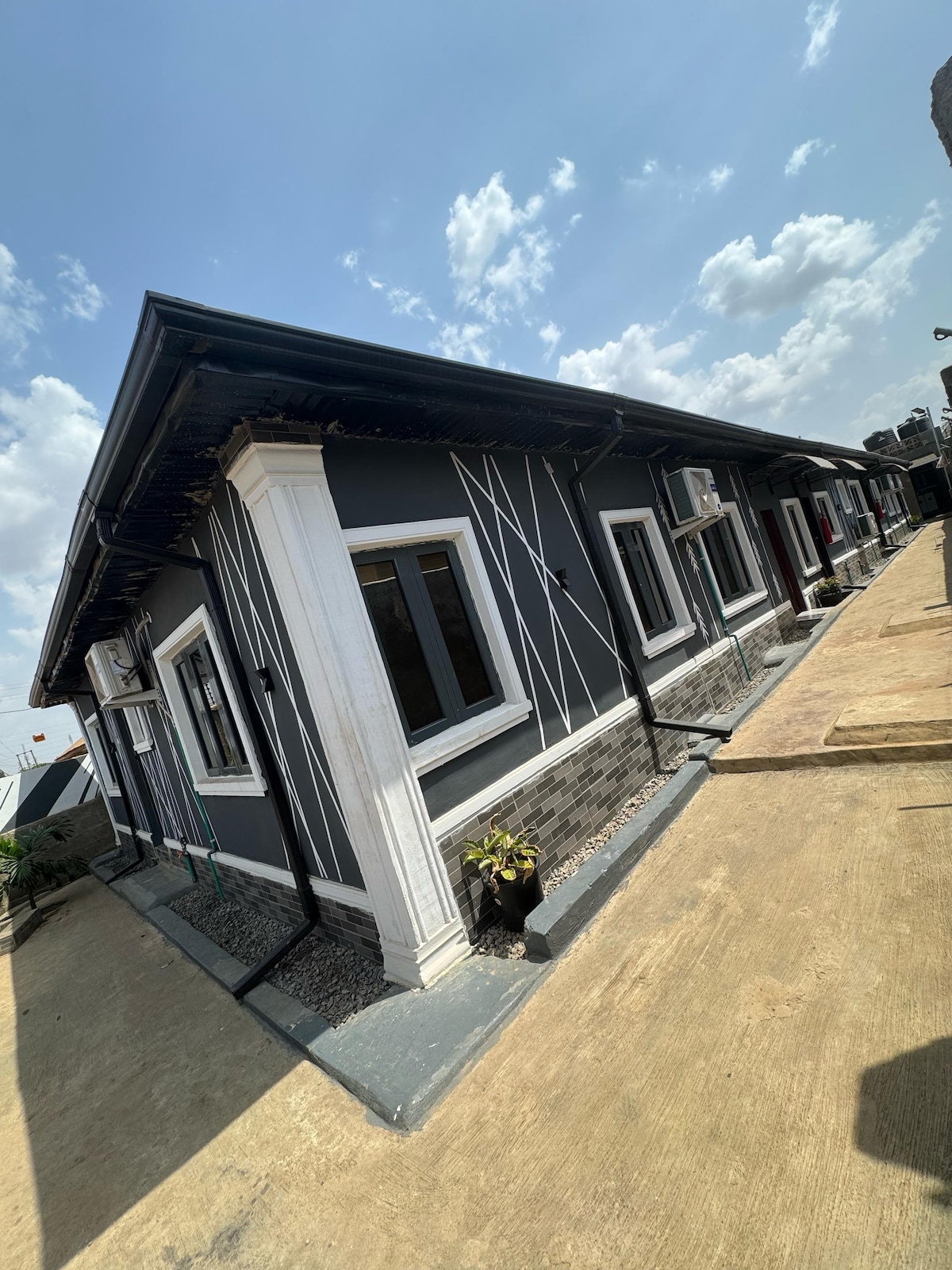 यह उत्तम और लक्जरी सर्विस्ड अपार्टमेंट शहर से सावधानीपूर्वक दूर है; फिर भी शहर के केंद्र के लिए सुलभ है। यह सभी विशेष सुविधाओं और बिजली आपूर्ति प्रणाली के साथ केंद्रीय रूप से स्थित है, जैसे कि एक स्थापित इन्वर्टर और एक जनरेटर जो प्रति दिन 12 घंटे कूलिंग यूनिट को पावर देने में कभी विफल नहीं होता है। हम एक शुल्क के लिए कपड़े धोने की सेवाएं प्रदान करते हैं लेकिन इस्त्री मुफ्त है। यह नोवारे मॉल जैसी जगहों से दस मिनट की दूरी पर है, जहाँ आपको जेनेसिस सिनेमा, शॉपराइट, स्पा, नाई की दुकान,रेस्तरां आदि मिलते हैं।