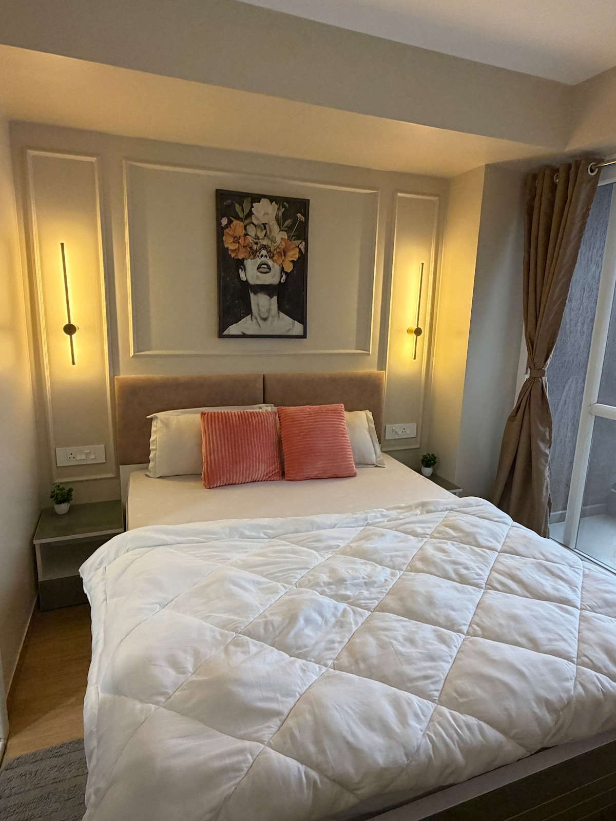 404 Luxe Haven में कदम रखें, जो 404 वर्गफ़ुट में फैला एक स्टूडियो अपार्टमेंट है, जिसे बड़ी सूझबूझ के साथ डिज़ाइन किया गया है और जहाँ आधुनिक सुविधाओं, हल्की रोशनी और आकर्षक इंटीरियर का बेजोड़ मेल है। यह जगह सिंगल लोगों, कपल या व्यावसायिक यात्रियों के लिए एकदम सही है। यहाँ एक खास सरसों के रंग का मखमली सोफ़ा, फ़्लोरल बैकलाइटिंग वाला एक आरामदायक क्वीन बेड, एक स्टाइलिश मॉड्यूलर किचन और हरियाली से भरी एक आरामदायक बालकनी है। आधुनिक सजावट, हल्के न्यूट्रल रंगों और बिना किसी परेशानी के ठहरने के लिए चुनी गई हर ज़रूरी चीज़ के साथ शांतिपूर्ण माहौल का आनंद लें।