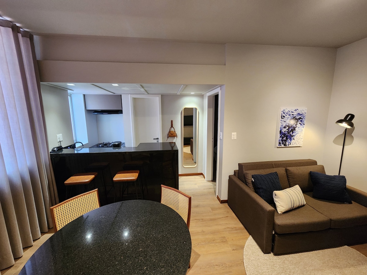 सवासी के बीचों - बीच, प्राका दा लिबरडेड और शॉपिंग पैटियो सवासी से तीन ब्लॉक की दूरी पर, निजता और स्वतंत्रता चाहते हैं, उनके लिए जीर्णोद्धार किया गया शानदार अपार्टमेंट। स्प्लिट एयर कंडीशनिंग वाला सुइट और लिविंग रूम, 500 मेगाबाइट स्पीड वाला फ़ाइबर वाई - फ़ाई, लिविंग रूम और बेडरूम में केबल टीवी, इंडक्शन स्टोव, माइक्रोवेव, इलेक्ट्रिक ओवन, मिनीबार, नेस्प्रेस्सो कॉफ़ी मशीन, सुस्वादु ढंग से सजाया गया, दैनिक नौकरानी सेवा, पार्किंग की जगह, स्विमिंग पूल, जिम, सौना, रेस्तरां और 24 - घंटे दरबान।