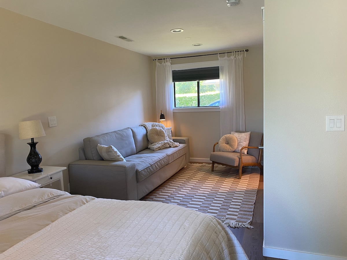 अलग रहने की जगह और लॉन्ड्री वाला कमरा, निजी, आरामदायक अपार्टमेंट। डाउनटाउन सैन राफेल, डोमिनिकन विश्वविद्यालय और स्थानीय/क्षेत्रीय परिवहन के लिए चलो। सैन फ़्रांसिस्को के लिए एक फ़ेरी लें या जायंट्स या वॉरियर्स गेम में सीधे जाएँ। नापा/सोनोमा के लिए 101 पर हॉप करें। मुइर वुड्स और समुद्र तटों पर जाएं - सभी 45 मिनट से भी कम दूरी पर। एक व्यक्ति के लिए आदर्श (बिस्तर साझा करने पर, अनुरोध पर दो पर विचार करेंगे)। छोटी या लंबी बुकिंग के लिए बेहतरीन।