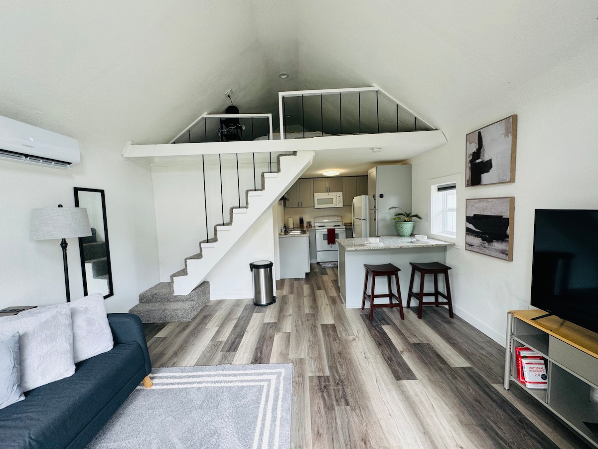 परिवार के साथ आने वाले रिश्तेदारों के लिए बिलकुल सही! एक सुरक्षित और शांत आस - पड़ोस में बेहतरीन स्तरीय आराम देने के लिए डिज़ाइन किया गया है, ताकि आप स्टाइल में आराम कर सकें। हाल ही में 350 वर्ग फ़ुट में फिर से तैयार किया गया, लॉफ़्ट में एकल यात्री, जोड़े और पालतू जानवर पूरी तरह से रह सकते हैं जो साझा पूरी तरह से बाड़ वाले पिछवाड़े में खेल सकते हैं! यहाँ दूर से काम करना एक हवा है! हाई स्पीड वाई - फ़ाई, बड़े बिल्ट - इन डेस्क और कॉफ़ी से भरे किचन का इस्तेमाल करें! साथ ही! हॉटटब सुविधा को $ 20/रात पर रिज़र्व करके अपनी छूट को अगले स्तर तक बढ़ाएँ!!