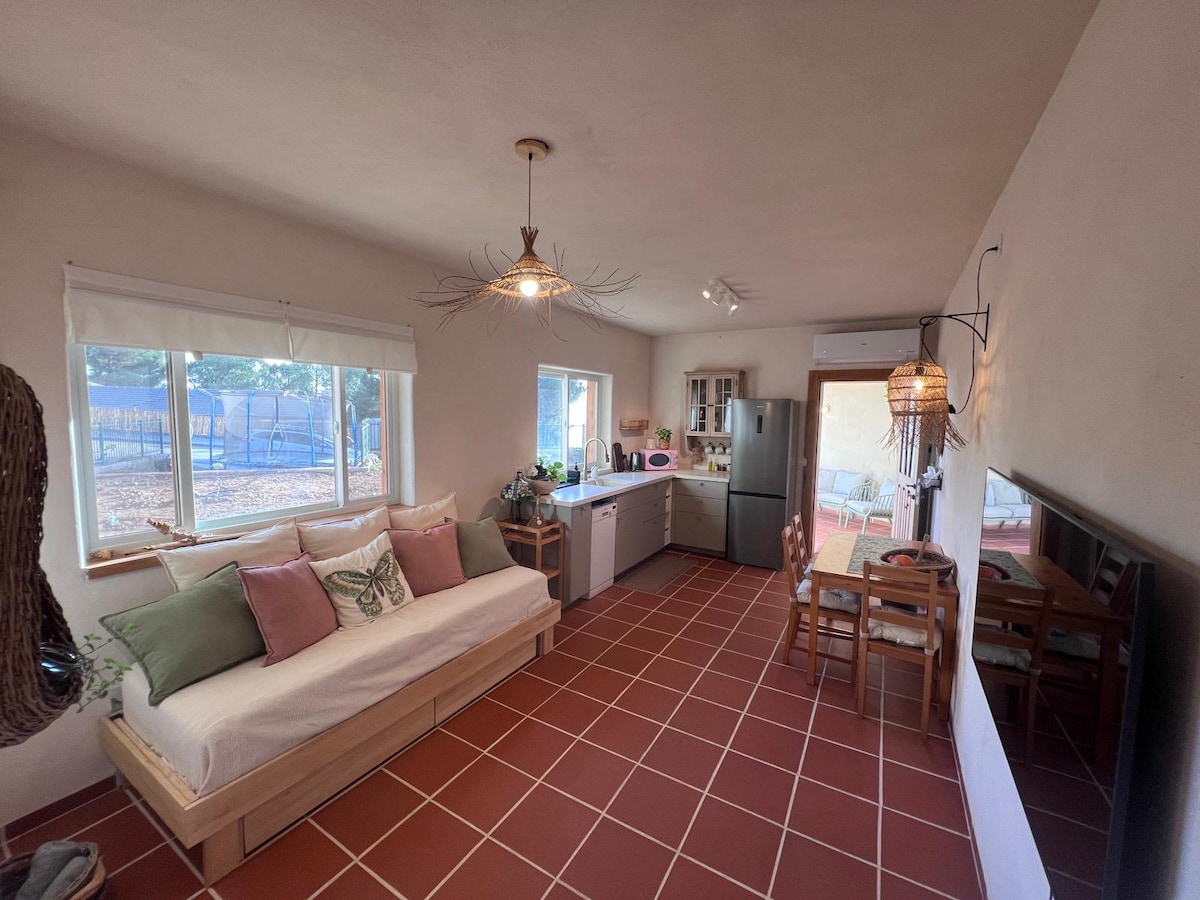 नहल डैन के जादुई झरनों में से एक से महज़ 3 मिनट की पैदल दूरी पर एक शानदार और पूरी तरह से अलग एक बेडरूम वाला अपार्टमेंट। अपार्टमेंट में एक सुसज्जित किचन है जिसमें एक रेफ़्रिजरेटर, माइक्रोवेव, स्टोव, इलेक्ट्रिक केतली, एस्प्रेसो मशीन और बहुत कुछ शामिल है एयर कंडीशनर, टॉयलेट+शावर, टॉयलेटरीज़ और तौलिए। एक टीवी जिसमें हाँ और नेटफ़्लिक्स और कई अन्य विलासिताएँ शामिल हैं। अपार्टमेंट में एक आँगन है, जहाँ से हर्मन और घाटी को घेरे हुए पहाड़ों का नज़ारा नज़र आ रहा है। हुला घाटी में स्थित किबुत्ज़ हागोश्रिम, हरे और प्रकृति से भरपूर, किबुत्ज़ में नाहल डैन के पार्कों में से एक से गुज़रता है और यहाँ घूमने - फिरने के लिए कई तरह के शानदार रास्ते हैं। इसके अलावा, किबुत्ज़ में एक मिनीमार्केट, पब, इतालवी रेस्तरां और एक कंट्री क्लब और पूल भी है।