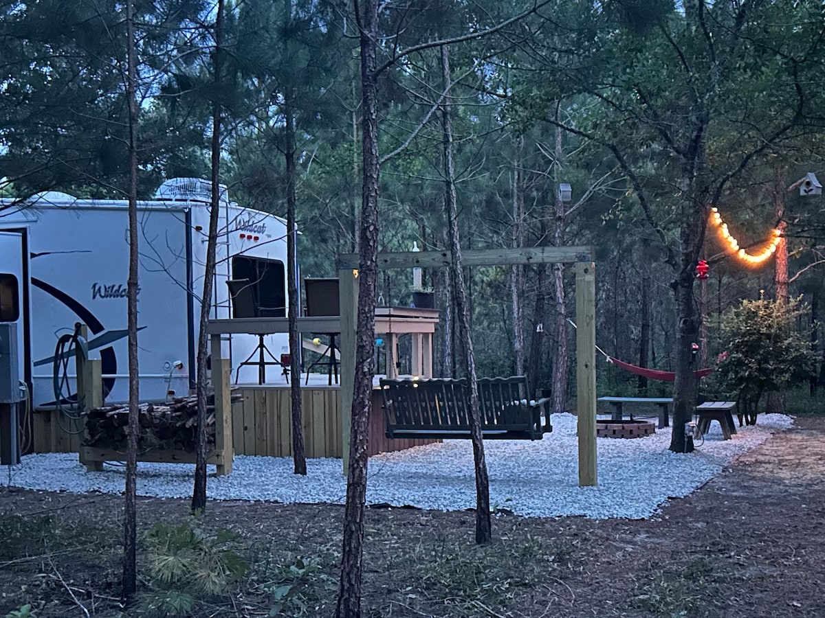 सभी समावेशी कैम्पिंग साइट में प्रकृति में इस रोमांटिक जगह की सुंदर सेटिंग का आनंद लें। कैम्पर और छोटा घर! एक की कीमत पर 2! वाईफ़ाई, टीवी, एसी, वॉशर ड्रायर, फ़ायर पिट, ग्रिल, गज़ेबो और हॉट टब जैसी सभी ज़रूरी सुविधाएँ! 2 जोड़ों के लिए बिल्कुल सही है, लेकिन 6 व्यक्तियों के लिए उपयुक्त है अभी यादें बनाएँ। आज ही बुक करें!