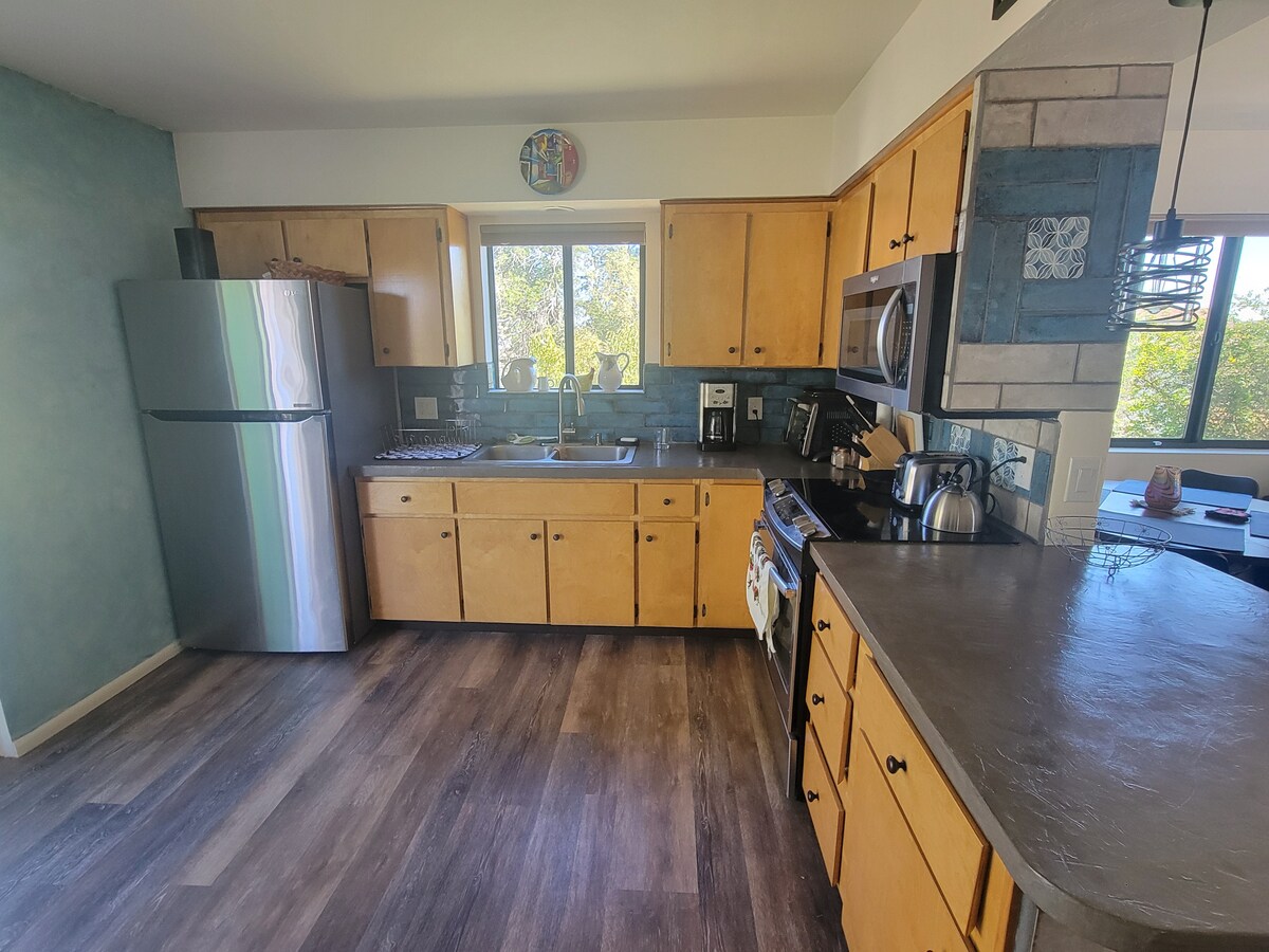 इस अनोखी और सुकूनदेह जगह पर आराम से समय बिताएँ: ओरेकल, एरिज़ोना में एक निजी हिलटॉप एस्टेट पर मौजूद 700 वर्ग फ़ुट का पूरी तरह से नवीनीकृत कैसिटा। सांता कैटालिना और माउंट लेमन के 360° पहाड़ी नज़ारों के साथ सुबह का आनंद लें। नई लकड़ी के फ़र्श, नए सिरे से बनाए गए किचन और बाथरूम, नया कार्पेट और ए/सी, गैस हीटर। सूर्यास्त के समय झूले पर झूलना, साइट पर हाइकिंग, प्राचीन मूल अमेरिकी मोर्टार रॉक और पेट्रोग्लिफ़। सड़क के पार लैवेंडर फ़ार्म और कॉफ़ी शॉप, पैदल दूरी पर पैटियो डेली और किराने की दुकान। पालतू जानवर 👍🏼 बचें और रिचार्ज करें!