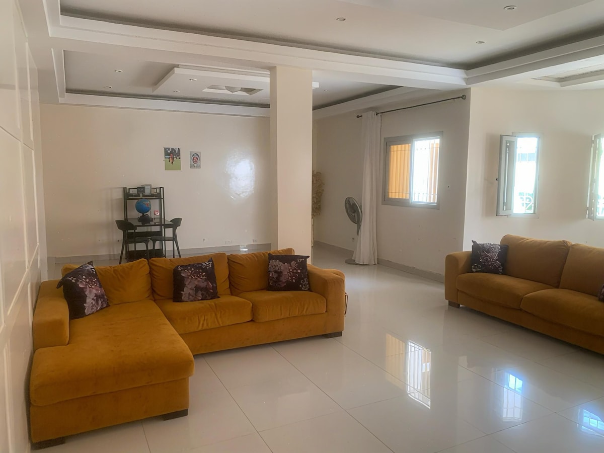 एक आवासीय क्षेत्र में बहुत विशाल अपार्टमेंट। डकार इंटरनेशनल फ़ेयर से सिर्फ़ 5 मिनट की पैदल दूरी पर। समुद्र से 1 किमी दूर। शहर के केंद्र से 20 मिनट की दूरी पर। अल्माडीज़ से 15 मिनट की ड्राइव पर। पूरी तरह से 2 डबल बेडरूम से लैस, एक बड़ा लिविंग रूम जिसे तीसरे बेडरूम, एक सुसज्जित किचन, एक लिविंग रूम या पारिवारिक जगह, 1 बालकनी, 1 बरामदा और 2 बाथरूम के रूप में इस्तेमाल किया जा सकता है। वॉटर हीटर से सुसज्जित बाथरूम।