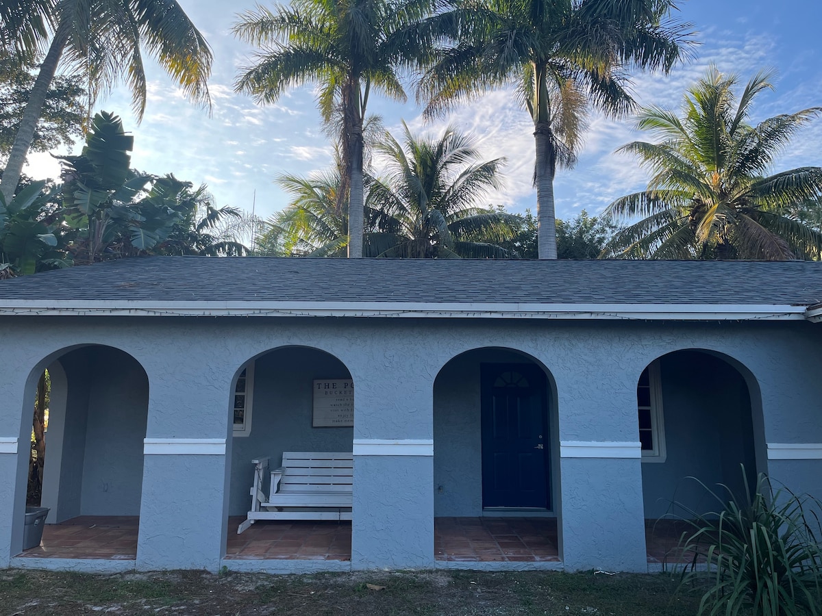 इस अनोखे और शांत ग्रामीण इलाके में आराम करें (आप बस एक मुर्गा सुन सकते हैं) घर की छोटी - सी जगह। बहुत सुरक्षित और शांत। आपको हमारे आस - पास के व्यस्त शहरों के बाहर एक निजी जगह मिलती है, लेकिन यात्रा करने के लिए पर्याप्त है। PBI से बस 40 मिनट और I -95 से बीस मिनट की दूरी पर। कासा लूना का अपना निजी आउटडोर एरिया, पैटियो टेबल और बास्केटबॉल हूप है, जहाँ आप कुछ एक्सरसाइज़ कर सकते हैं। हम कोविड के लिए अतिरिक्त सावधानी बरतते हैं, आपके ठहरने से पहले गहराई से सफ़ाई करते हैं। 240 वर्ग फ़ुट