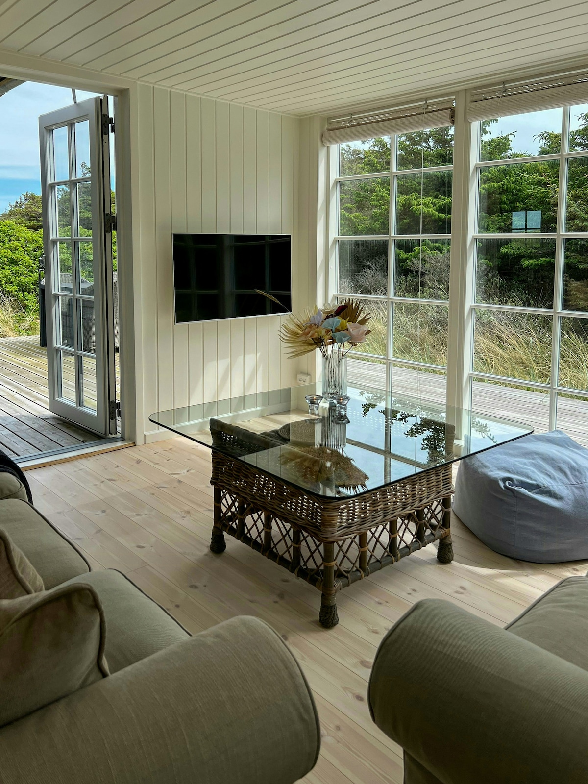 With an interior inspired by classic Danish seaside hotels and a location in the heart of North Jutland's countryside, this is the perfect setting for a relaxing vacation. Large windows frame the beautiful landscape and bring nature right into the living room.