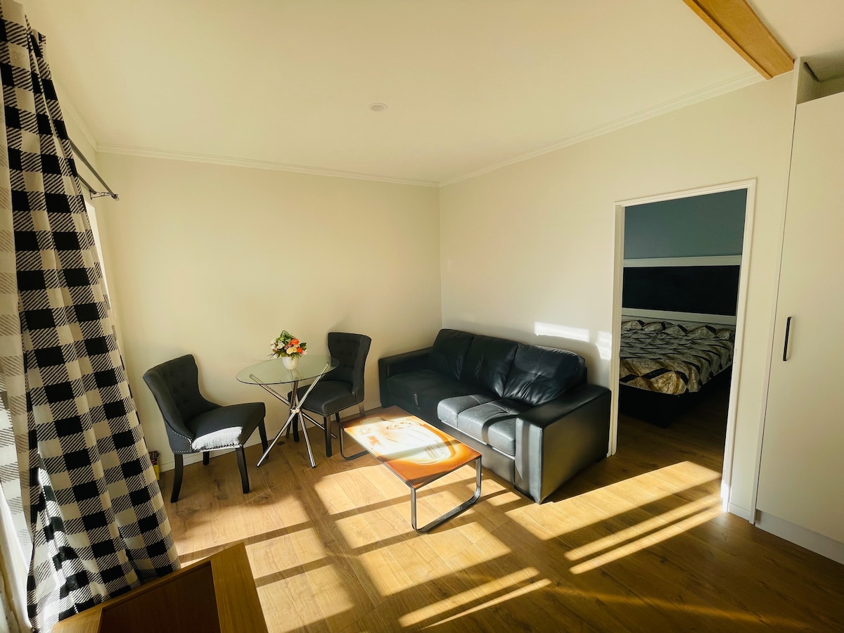 आरामदायक आधुनिक जगह। बड़ा स्टूडियो कमरा जिसमें क्वीन बेड, टेबल और कुर्सियाँ और फ़्रिज, टोस्टर, माइक्रोवेव, केतली, चाय, कॉफ़ी, दूध और हल्के स्नैक्स के साथ रसोई है। स्टूडियो मुख्य घर से जुड़ा हुआ है, इसका अपना प्रवेशद्वार और निजी आउटडोर क्षेत्र है। सड़क के बाहर पार्किंग। Nth और Sth दोनों मोटरवे तक आसान पहुँच के साथ अर्ध - ग्रामीण। गाँव से लगभग 2.5 किलोमीटर की दूरी पर.. हवाई अड्डे से 25 किमी दूर। कोई सार्वजनिक परिवहन नहीं है, इसलिए आपको वाहन की ज़रूरत है। ज़रूरत पड़ने पर आप एक सिंगल एयरबेड दे सकते हैं और एक खाट पोर्ट कर सकते हैं।