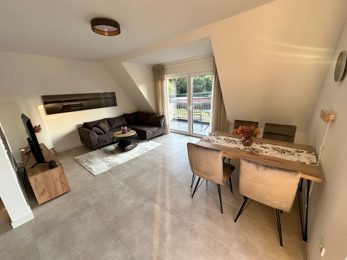 मोइन! जर्मनी के वेनिस के पापेनबर्ग में आपका स्वागत है। हमारा अपार्टमेंट "एनी" ओबेनडे के पापेनबर्ग जिले में स्थित है, जो सीधे नहर पर स्थित है। सुपरमार्केट, रेस्तरां और अन्य सेवाएँ 1.5 किमी के भीतर आसानी से सुलभ हैं। लगभग 50 वर्गमीटर के अपार्टमेंट में एक अलग प्रवेशद्वार है और यह बाहरी सीढ़ियों के माध्यम से सुलभ है। इमारत 2022 में बनाई गई थी और इसलिए तकनीकी रूप से अप - टू - डेट है (अंडरफ़्लोर हीटिंग, वेंटिलेशन और वेंटिलेशन सिस्टम)।
