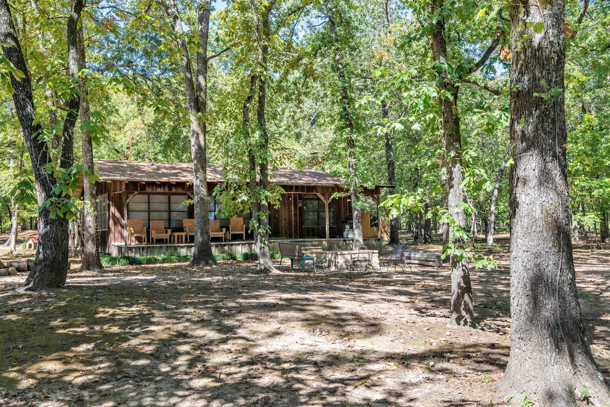 Unplug & unwind at this newly constructed unique and tranquil getaway. Enjoy the view from amongst the pines from the tiny house front porch. Quiet country area that is just 8 miles north of Paris and 14 miles south of the Casino in Grant, OK. Please add your pet to your travelers if they will be traveling with you. There is a non refundable pet fee required. *we have upgraded to smart TV and fast internet