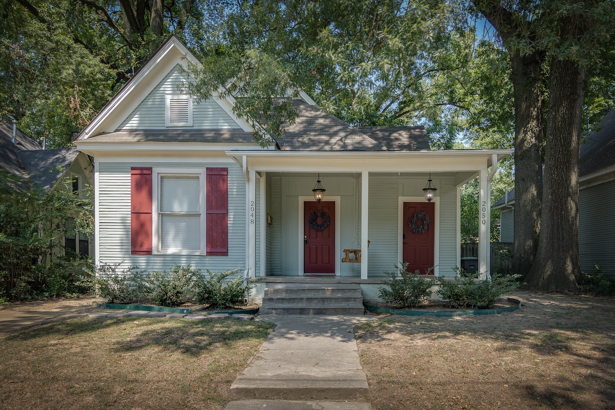 Peaceful guest house with central heat and air, close to everything and no cleaning list! Enjoy driveway parking and complimentary snacks in our comfortable space full of vintage furniture and books. Our historic neighborhood is located blocks from the highway, 7 minutes from downtown, 5 minutes from midtown's best restaurants and shops, & 12 minutes from Graceland and the airport. Explore Memphis and rest in our charming cottage! A full size second bed is available by request.