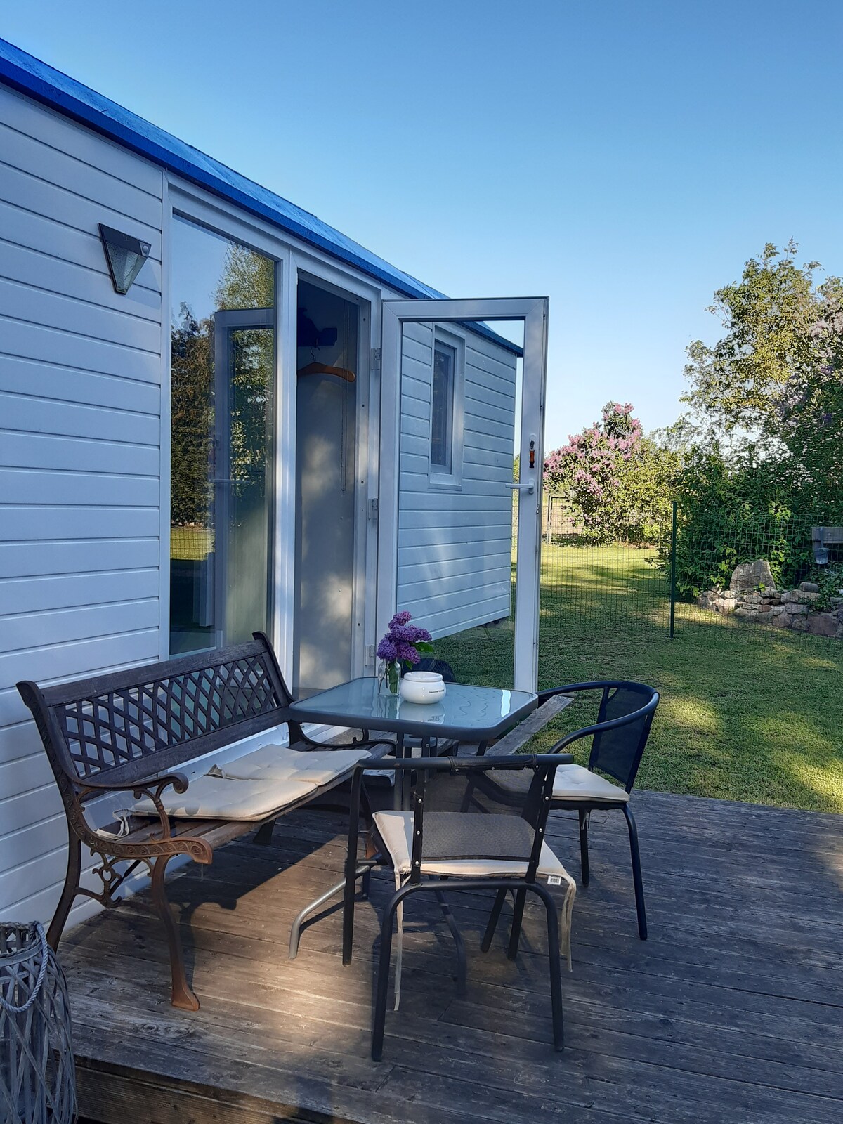 हमारा प्यार से बनाया गया ट्रेलर आराम करने के लिए सही जगह प्रदान करता है। बगीचा विशाल और बहुत, बहुत हरा है, आप मेंढक और क्रेन सुन सकते हैं, और शाम को आप चमगादड़ देख सकते हैं। सीमा शांत, अछूता और प्रकृति के बीच में है। जिस घर में हम आपके साथ रसोई, बाथरूम और डाइनिंग रूम साझा करते हैं, वह कार से लगभग 400 मीटर की दूरी पर है। इसमें वाई - फाई भी है