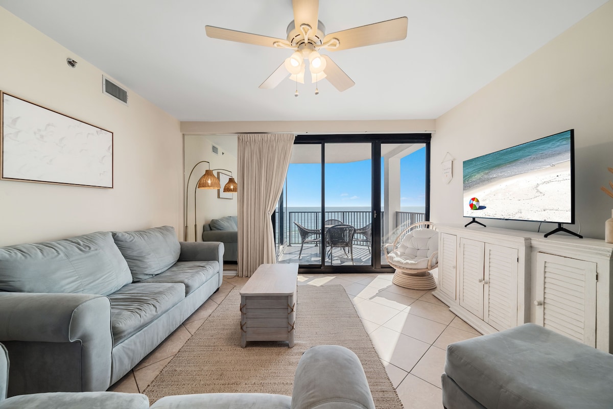 ASK about DISCOUNT rate for monthly stay in January and February 2026. DON'T FIGHT THE CROWDS for space on the beach! Unwind in our comfortable 4th floor Beach Front "Slice of Paradise" with private beach. The balcony offers unobstructed, gorgeous views of the Gulf and the beautiful white sands of Perdido Key. Soak up the sun as you kick back on the balcony and count the dolphins while being lulled by the sound of the waves and the salt air breeze.