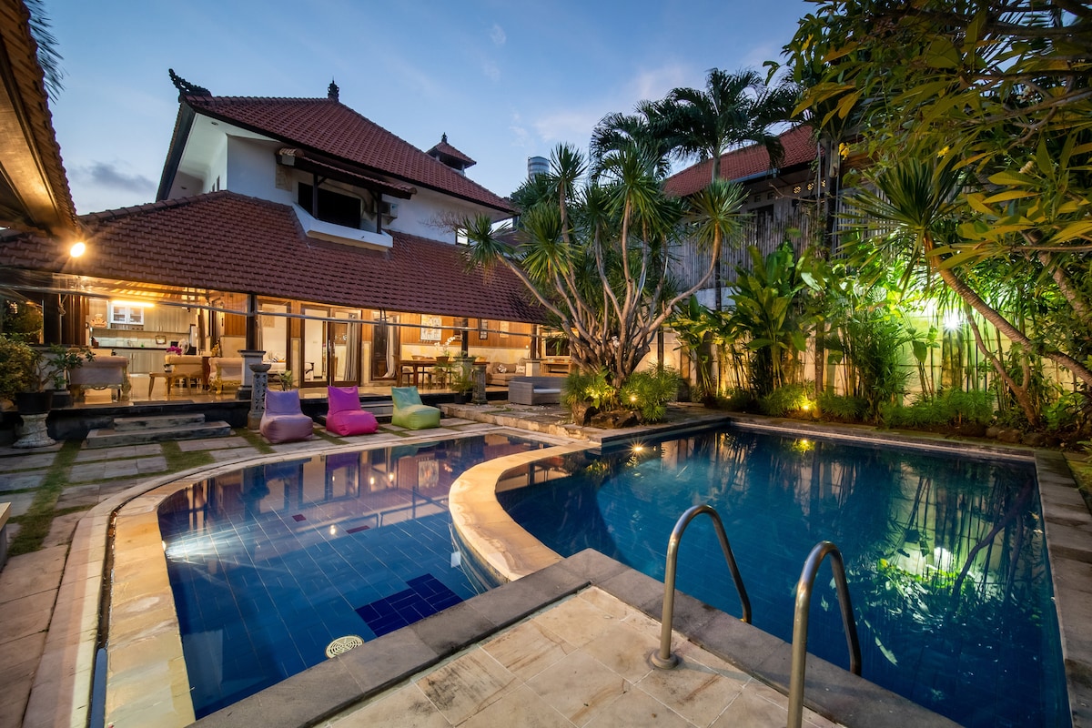 मुफ़्त नाश्ते के साथ बड़ा लक्ज़री 5br पूलविला!