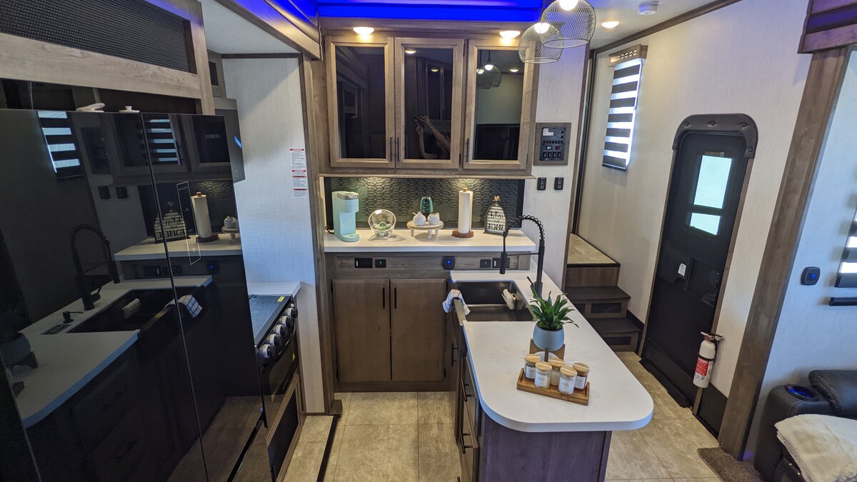 * अभी - अभी दो नए मिनीस्प्लिट एयर कंडीशनिंग सिस्टम इंस्टॉल किए गए हैं। इसे ठंडा और शांत रखता है। आरामदायक कैम्पर या ग्लैम्पर! 384 वर्ग फ़ुट लक्ज़री ने ग्रैंड डिज़ाइन द्वारा बनाया गया RV.m। नॉर्थ फ़ीनिक्स, एरिज़ोना में अर्बन कैम्पिंग। शानदार लोकेशन। किंग साइज़ बेड वाला एक बेडरूम। और रिक्लाइनर के साथ सोने के लिए एक सोफ़ा। आपकी लोकेशन या कैम्प ग्राउंड तक डिलीवरी के लिए भी उपलब्ध हो सकता है।