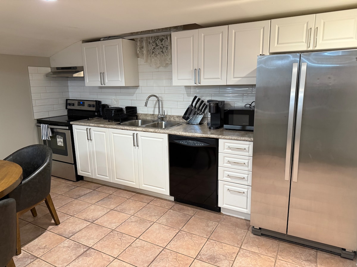 एक स्वच्छ आधुनिक अनुभव के साथ इस आरामदायक तहखाने सुइट के आकर्षक स्पर्श का आनंद लें। एक विशाल की विशेषता के साथ खूबसूरती से सजाया गया विशाल द्वीप और एक चमकीले के साथ ओपन कॉन्सेप्ट लिविंग रूम/किचन कॉम्बो एरिया स्टैंड - अप शॉवर के साथ जलाया गया बाथरूम। यह गेस्ट सुइट आपके बहुत ही निजी के साथ है प्रवेश द्वार उज्ज्वल और गर्मी से भरा है। सुविधाजनक रूप से स्थित: पिकरिंग टाउन सेंटर तक 5 मिनट की पैदल दूरी पर, पिकरिंग गो तक 10 मिनट की पैदल दूरी पर और 401 तक 2 मिनट की ड्राइव।