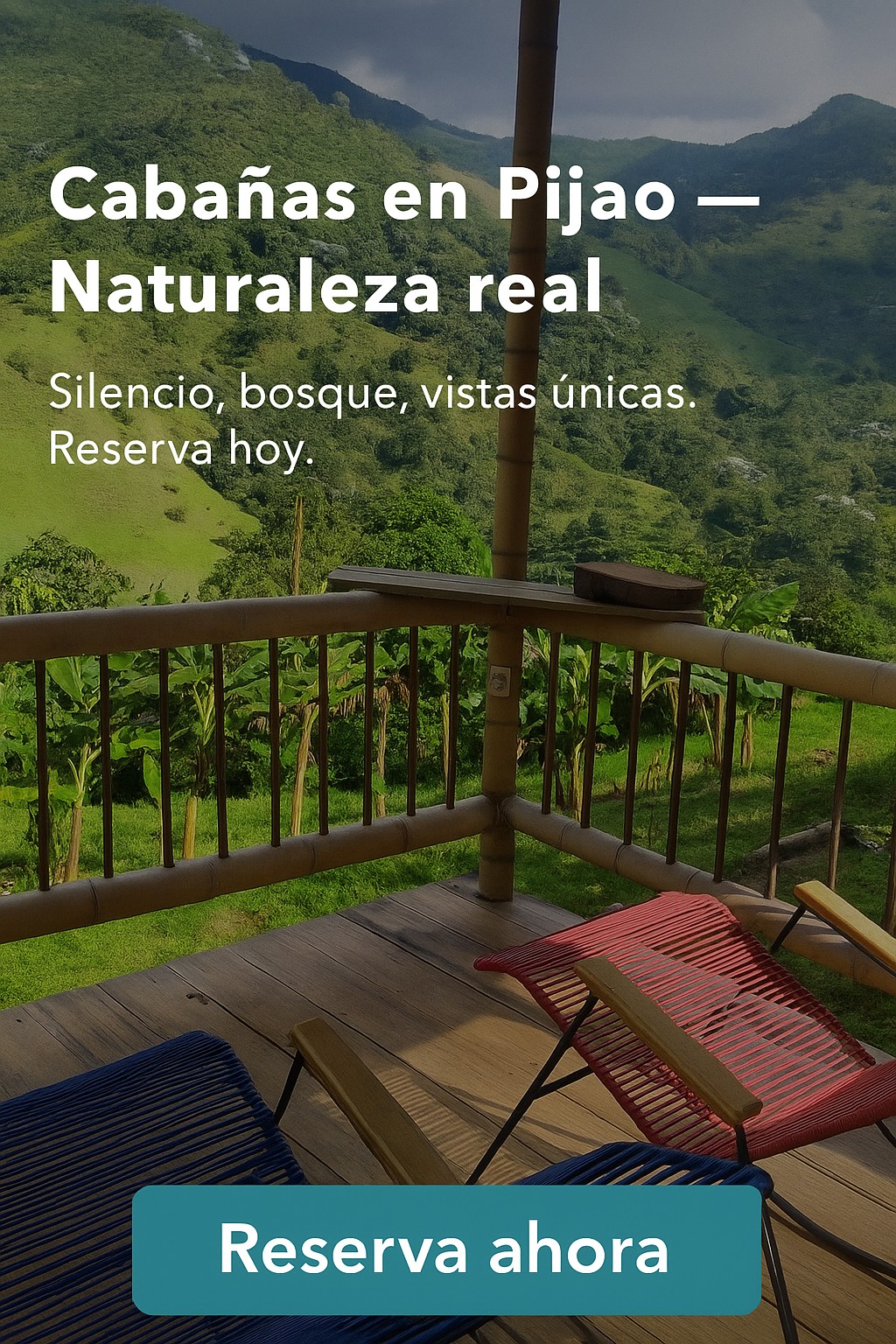 Sumérgete en la Naturaleza: Ecocabaña con Maloca y Terraza en Pijao Quindío Descubre una experiencia única en armonía con la naturaleza en Pijao, Quindío. Sumérgete en el corazón del Quindío y encuentra nuestra ecocabaña diseñada para amantes de la naturaleza y buscadores de tranquilidad. Rodeada de exuberante vegetación y vistas panorámicas, esta cabaña eco-amigable ofrece un refugio perfecto para escapar del ajetreo diario. A solo 15 minutos caminando de Pijao Quindio