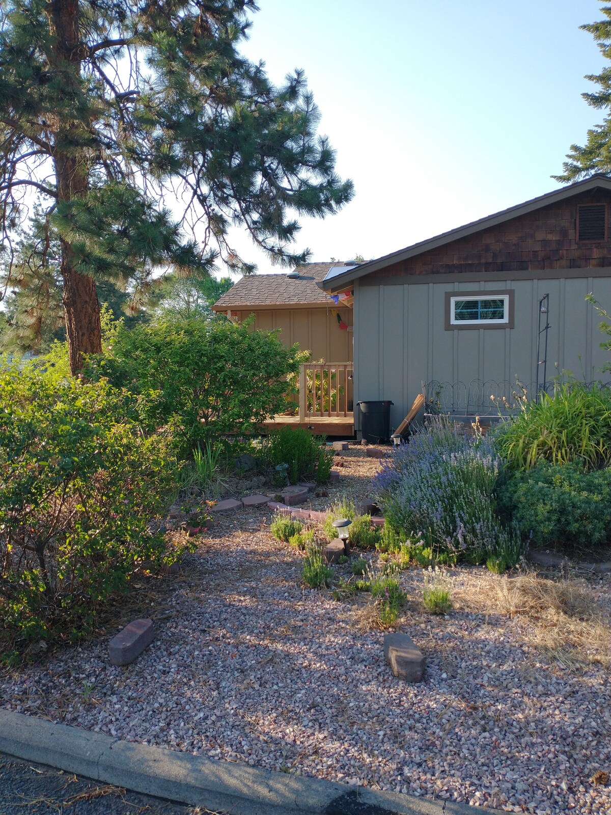 इस शांत कमरे को मुख्य घर से बंद कर दिया गया है और इसमें एक निजी डेक का प्रवेश द्वार और सभी सुविधाएँ हैं जो आपको बेंड का आनंद लेने के लिए चाहिए। शहर के केंद्र तक जाने के लिए 10 मिनट की ड्राइव/20 मिनट की बाइक की सवारी। कमरे में 2 अलग - अलग सिंक और शॉवर के साथ एक आसन्न बाथरूम है। बड़ा वॉक - इन अलमारी भी। स्विवेल माउंट पर बड़ी स्क्रीन वाला स्मार्ट टीवी नेटफ़्लिक्स के साथ आता है। छोटे डाइनिंग एरिया में मिनी फ़्रिज, नेस्प्रेसो मशीन, टोस्टर और माइक्रोवेव शामिल हैं। स्थानीय डॉग पार्क और पायलट बट्टे स्टेट पार्क के करीब शांत पड़ोस।