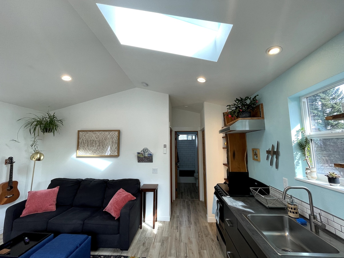 बेंड के मिडटाउन में स्थित और लार्कस्पर ट्रेल तक पहुँच के साथ, जो प्रतिष्ठित पायलट ब्यूट की ओर जाता है, यह उज्ज्वल, नवनिर्मित 450 वर्ग फ़ुट का अपार्टमेंट आपके ठहरने को आरामदायक बनाने के लिए आरामदायक और आधुनिक तत्वों को संतुलित करता है। एक पूरा किचन, क्वीन बेड वाला एक अलग कमरा, एक गहरा, आरामदायक टब, एक सोफ़ा जो मेमोरी फ़ोम क्वीन बेड में बदल जाता है, नेटफ़्लिक्स तक पहुँच वाला टीवी और एक अलग लॉन्ड्री रूम। हमारी जगह 2 मेहमानों के लिए एक बढ़िया विकल्प है, लेकिन यह 4 मेहमानों के लिए एक बढ़िया विकल्प है।