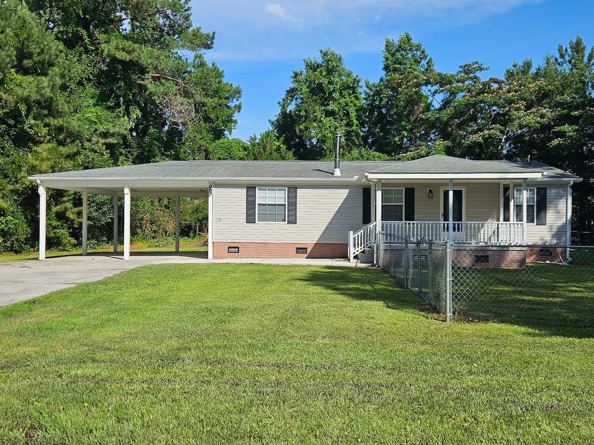देश में आपका स्वागत है। अपनी यादें बनाने के लिए 2 बेडरूम 950sq ft। अतिथि घर। अपने सभी खाना पकाने के बर्तन, बर्तन, पैन और बर्तनों से सुसज्जित। नेटफ्लिक्स के साथ Roku TVs। इंटरस्टेट 40 के लिए केवल 3 मिनट, जो सिर्फ गुजरने के लिए अच्छा है। विलमिंगटन और राइट्सविले बीच के लिए 45 मिनट। नदी के उतरने के लिए 15 मिनट। यह घर मुख्य घर के पीछे सेट है।