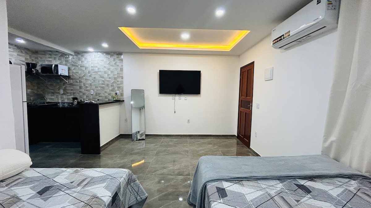 पक्षियों की आवाज़ और इल्हा ग्रांडे की हरे रंग की आवाज़ सुनें। Loft Raiz Caiçara एक आधुनिक और न्यूनतम जगह है, जो प्रकृति के साथ शांति, आराम और सीधे संपर्क की तलाश करने वालों के लिए आदर्श है — केंद्र और विला दो अब्राओ घाट से बस 4 मिनट की पैदल दूरी पर। हलचल और हलचल से डिस्कनेक्ट करें और ज़रूरी चीज़ों से फिर से जुड़ें। 🌿