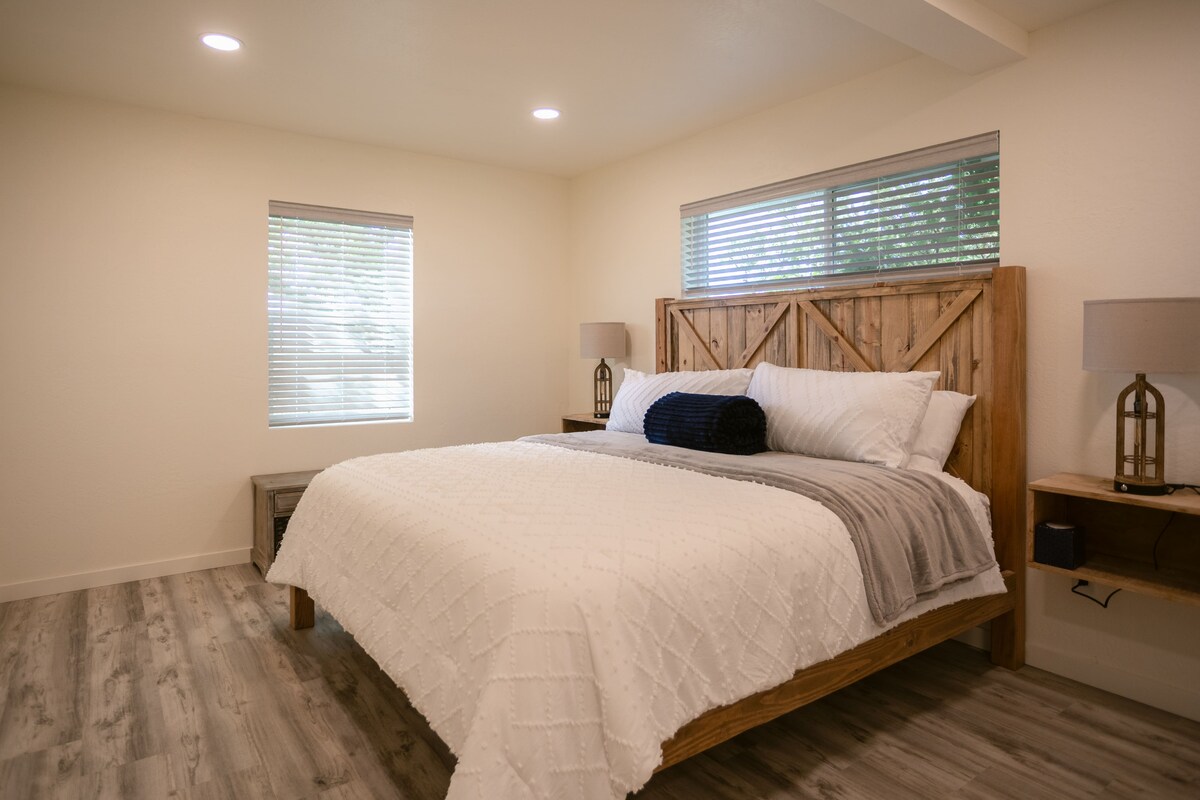 निजी रैंच "बंकहाउस" देश के खलिहान के पास एक घास के मैदान पर स्थित है, जहाँ से घाटी, पहाड़ों के नज़ारे दिखाई देते हैं और यहाँ से होकर ही लकड़ी के बने हुए खूबसूरत हाइकिंग ट्रेल्स तक पहुँचा जा सकता है। "बंकहाउस" में मूल बंकहाउस का देहाती आकर्षण बरकरार है, लेकिन अंदर से यह नए स्तर के आराम, स्टाइल और सुविधाओं का आनंद देता है! यह एक अपडेटेड बड़ा (20X40) खुला स्टूडियो/बेडरूम है, जिसमें किचनेट और निजी बाथरूम (क्लॉफ़ुट शॉवर/टब) है। एक किंग-साइज़ बेड और एक अतिरिक्त ट्विन बेड, अगर आपके साथ कोई तीसरा व्यक्ति यात्रा कर रहा है, तो सभी के लिए एक ही कमरा। साथ ही, टीवी और वाईफ़ाई